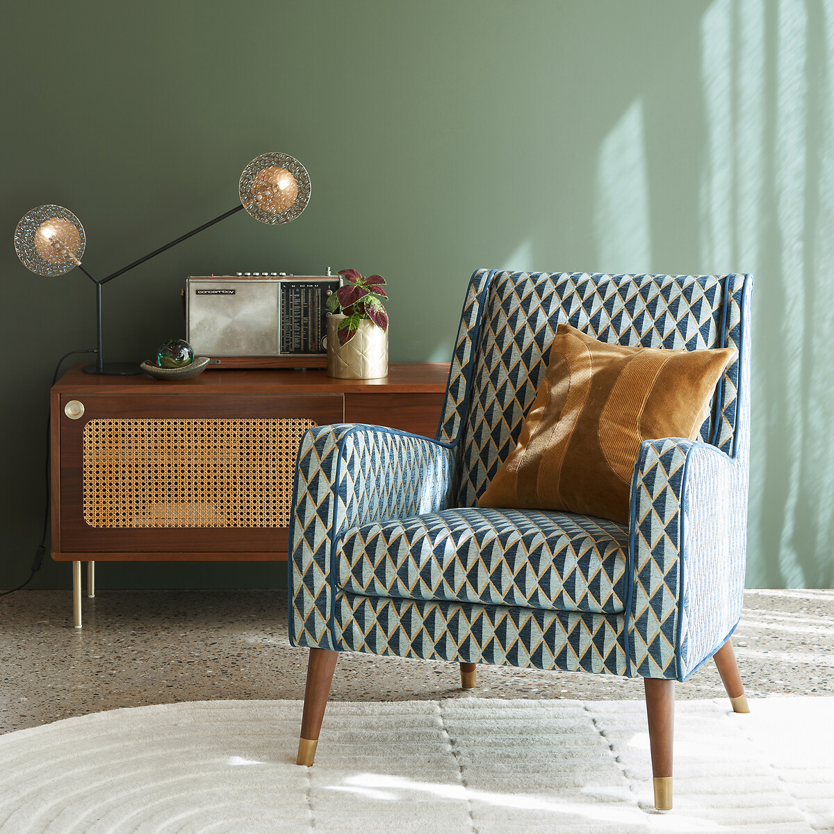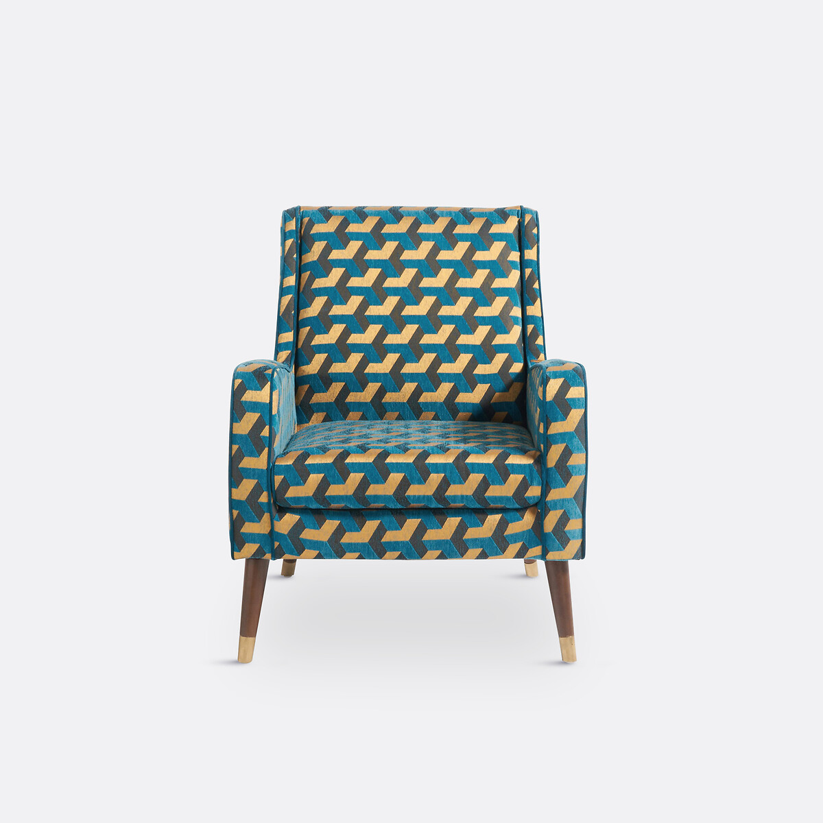 В центре внимания принт, построенный на косых линиях и оптической иллюзии, притягивающей взгляд. Модель преобразит даже самый лаконичный интерьер и расставит финальные штрихи. Кресло гармонично дополнит и оживит обеденную зону, кухню или гостиную.