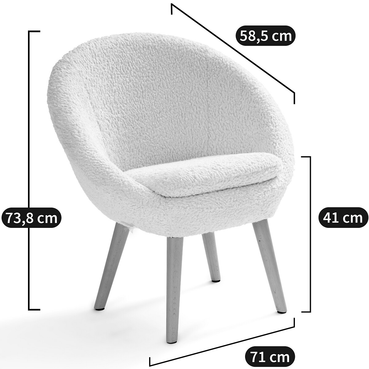 • Обивка из ткани букле 100% полиэстер, под овечью шерсть.