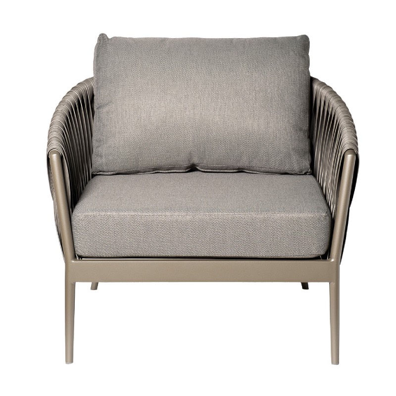 Запросить индивидуальное предложениеКрасивое и удобное уличное кресло "Муза" подарит прекрасные часы отдыха на свежем воздухе. Сварной алюминиевый каркас, окрашенный в цвет шампань по особой технологии, чрезвычайно устойчив к появлению ржавчины и сколов. Ленточная оплетка серого цвета выполнена вручную и защищена патентом, подушки спинки и сиденья из эксклюзивной полиэстровой ткани Wintech исключительно устойчивы к ультрафиолетовому излучению и атмосферным воздействиям, обладают высокими характеристиками водонепроницаемости, грязеустойчивы и легко моются. Размеры сиденья: ширина 43см, глубина 73см, высота от пола 45см. Толщина подушки сиденья 10см.Рекомендуется использовать чехлы для мебели или хранить уличную мебель в помещении, когда она не используется, выдерживает температуру от -15°C до +50°C. Создать уютную зону отдыха можно, сочетая это кресло с диваном и креслами