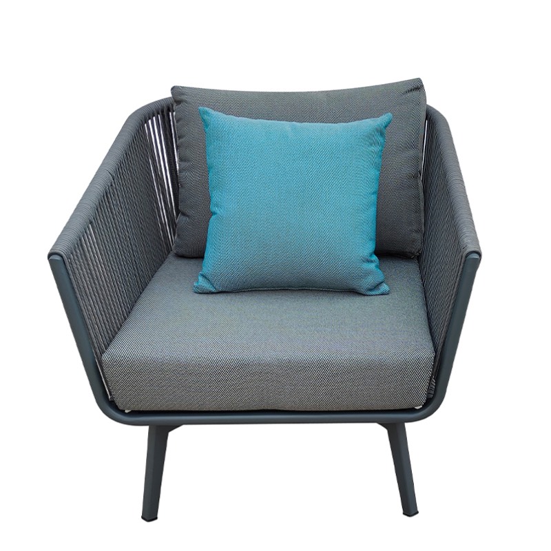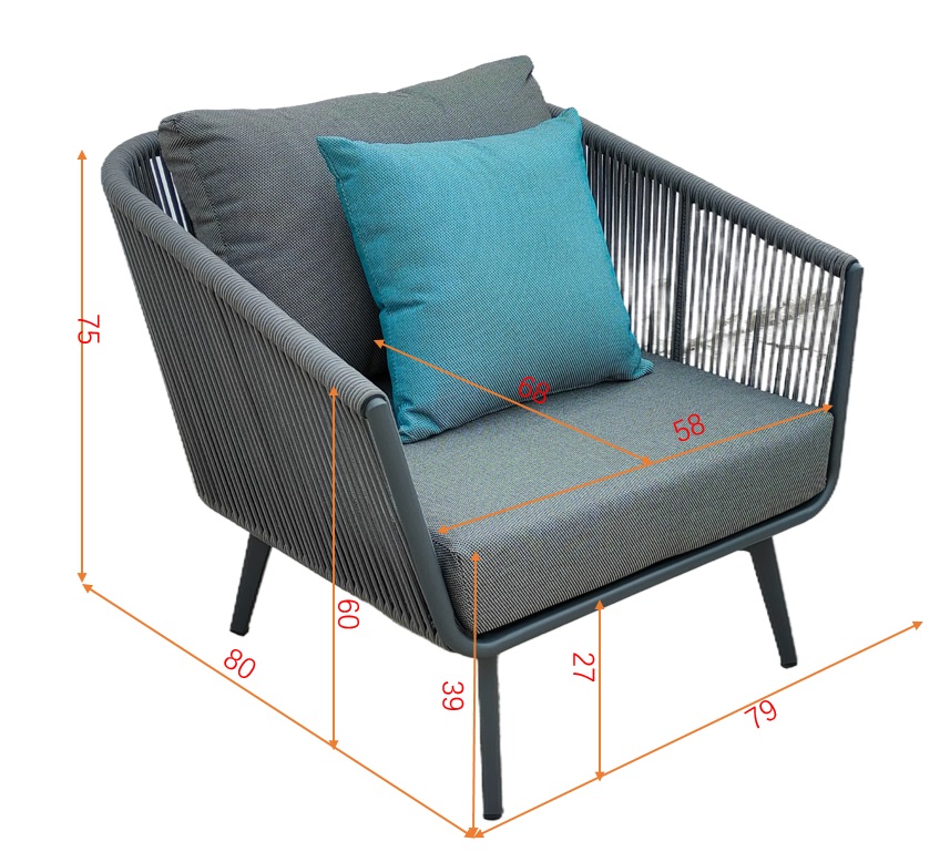 Запросить индивидуальное предложениеУличное кресло изготовлено из устойчивых к погодным условиям материалов. Cъемные подушки выполнены из специальной уличной ткани с водоотталкивающими свойствами OLEFIN тайваньского производства. Волокна пропитаны пигментами с высокой устойчивостью к ультрафиолетовому излучению, что предохраняет ткани от выцветания и разрушающего воздействия солнечных лучей.. Каркас из алюминия серого цвета, подлокотники и спинка оплетены декоративным шнуром. В комплект входит подушка сиденья 12см, подушка спинки и 1 декоративная квадратная подушка. Габариты сиденья: ширина 58см, глубина 68см, высота от пола - 39см, высота подлокотника от 20см. Сочетается с уличным диваном 129KN-02613 и кофейными столиками 129KN-01430, 129KN-00620.