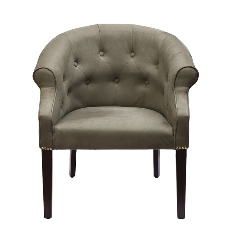 Запросить индивидуальное предложениеЭффектное кресло с каретной стяжкой – пример современной дизайнерской мебели, в которой гармонично сочетается комфорт, качество исполнения и узнаваемый дизайн. Классическая эргономичная форма, «богатый» цвет обивки из приятного на ощупь велюра, ножки из прочного натурального дерева – это оливковое кресло воплощает в себе актуальные тренды интерьерной моды. Стильное велюровое кресло с низкой спинкой одинаково уместно смотрится в современных интерьерах. Благодаря деревянному каркасу и качественному материалу обивки оно служит долгие годы, не теряя первоначальной эстетики. Кресло BUONO на фото представлено в следующем исполнении:: обивка - иск.замша Mocka17 оливковый цвет с отделкой декоративными гвоздями цвет -золото. Опоры-цвет №5. Габариты изделия: ширина-710мм, глубина- 660мм, высота- 770мм; габириты сиденья: ширина-450мм,глубина-450мм,высота-450мм.
