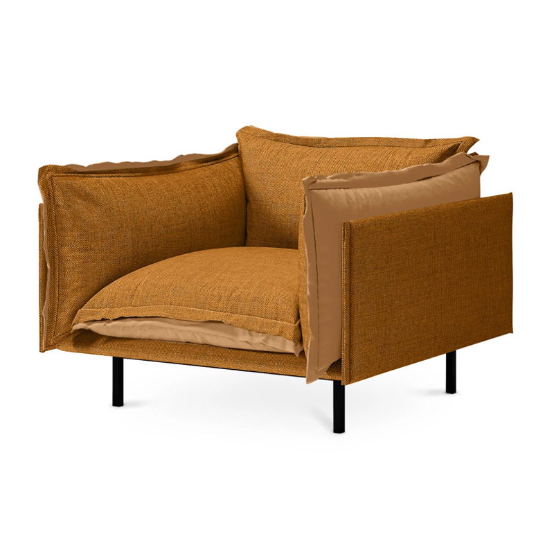Лицевой чехол каркаса несъемный, крепится к каркасу при помощи мебельных скоб. Очень комфортные и мягкие подушки спинки и подлокотников наполнены холлофайбером (внешние слои) и синтепухум (в техническом чехле из спанбонда).