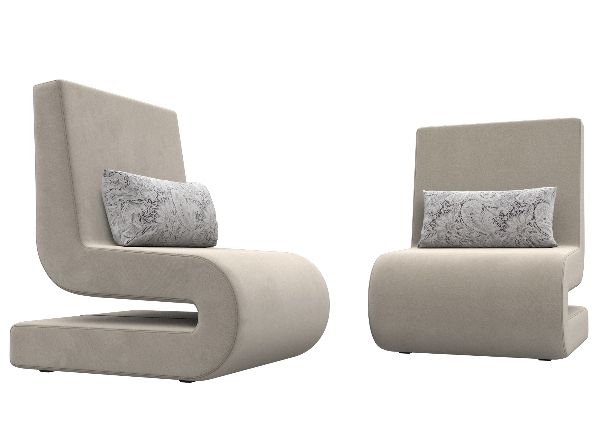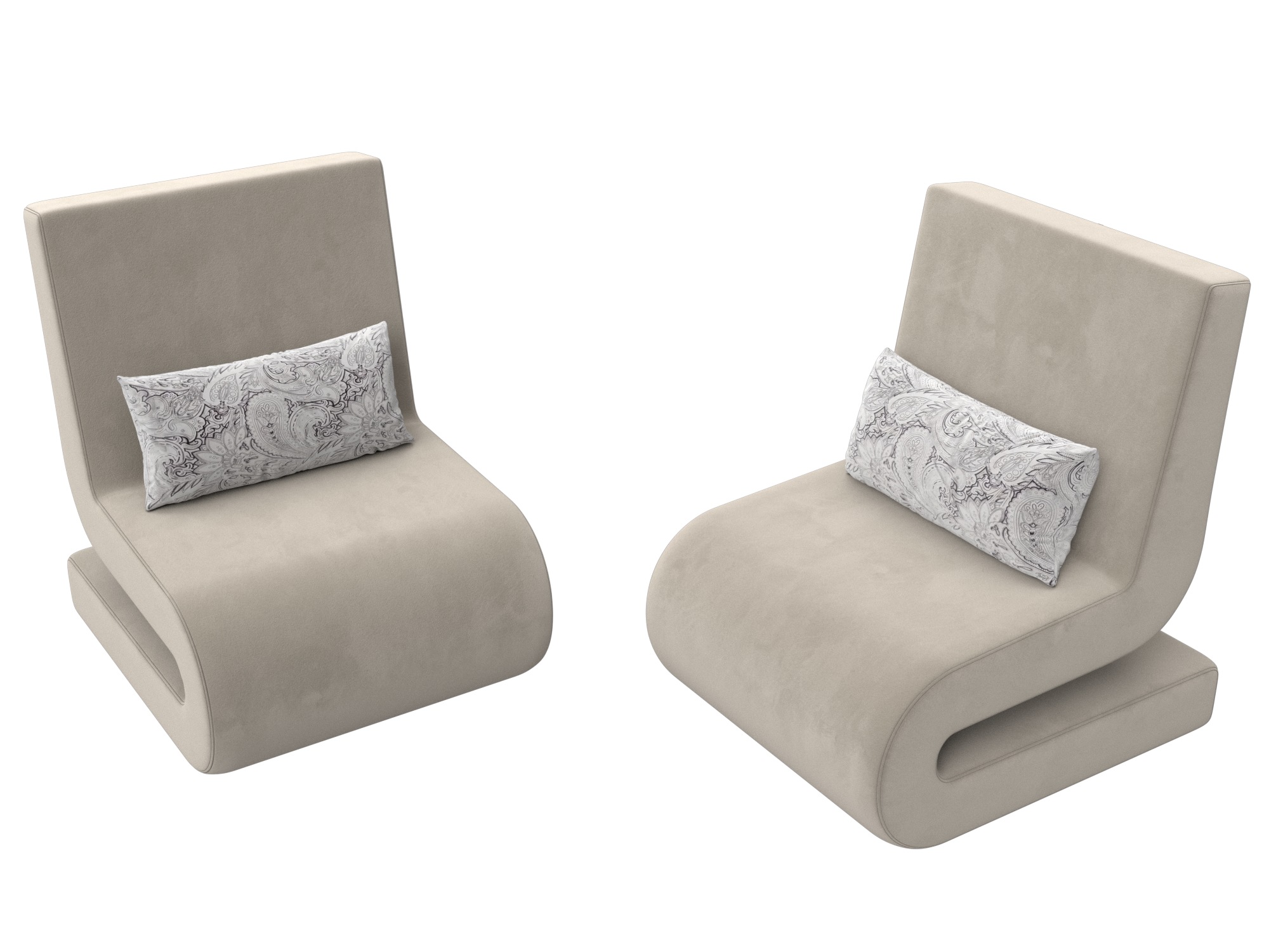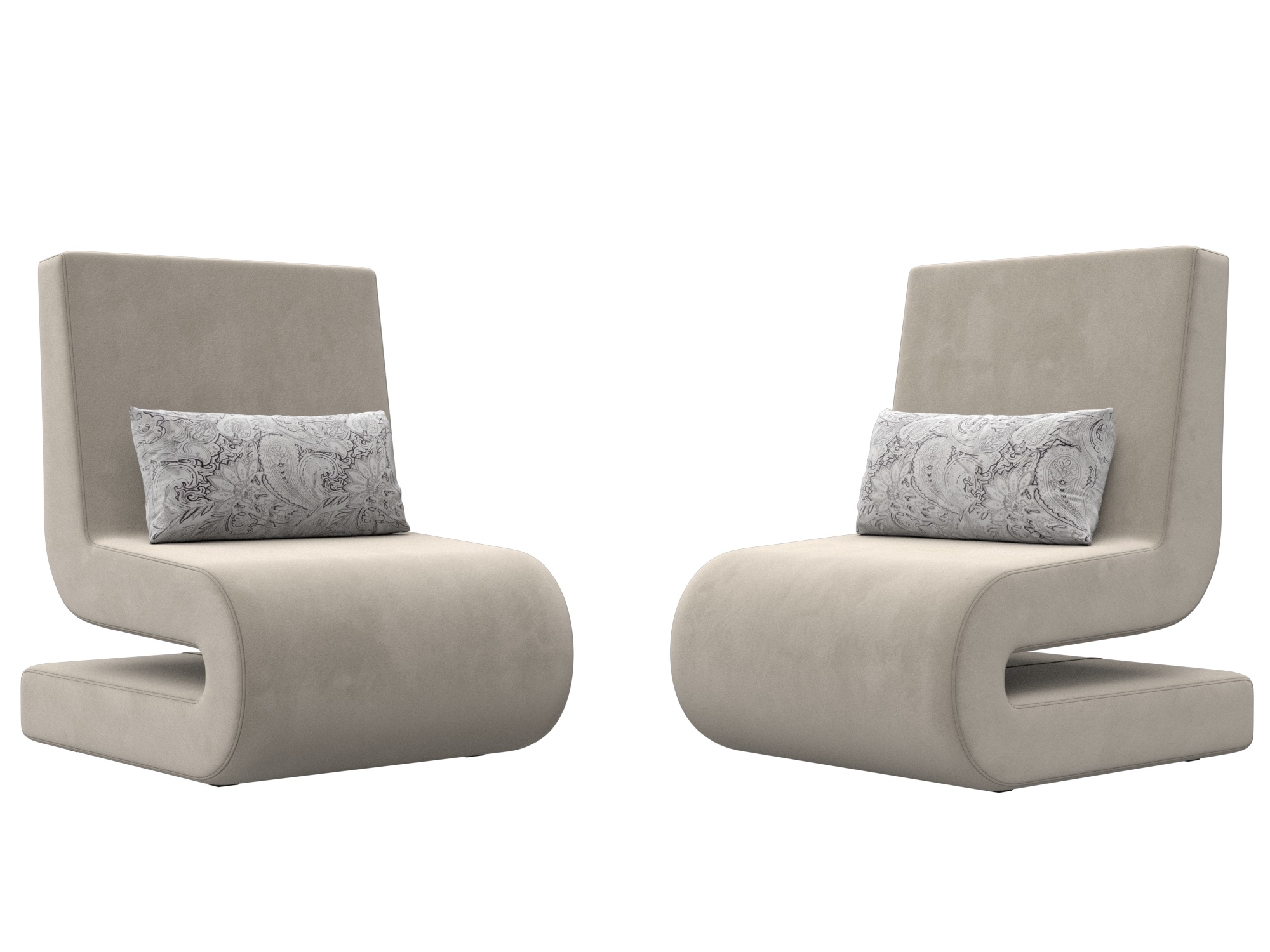 Кресло Волна (2 шт.) Бежевый/Серый, Микровельвет\Велюр