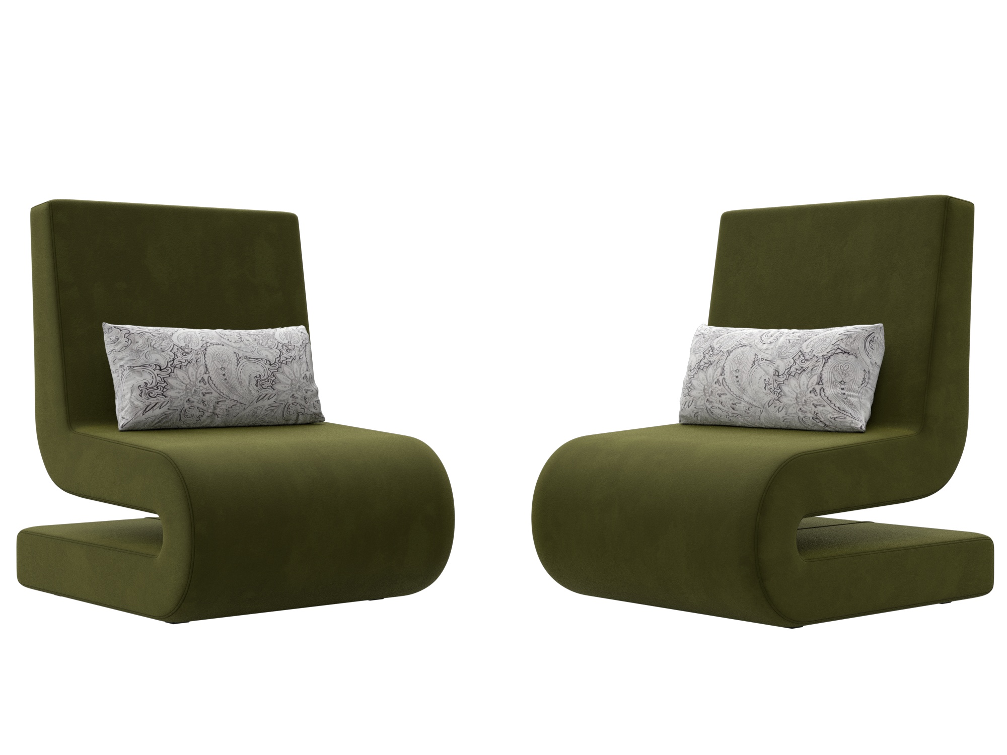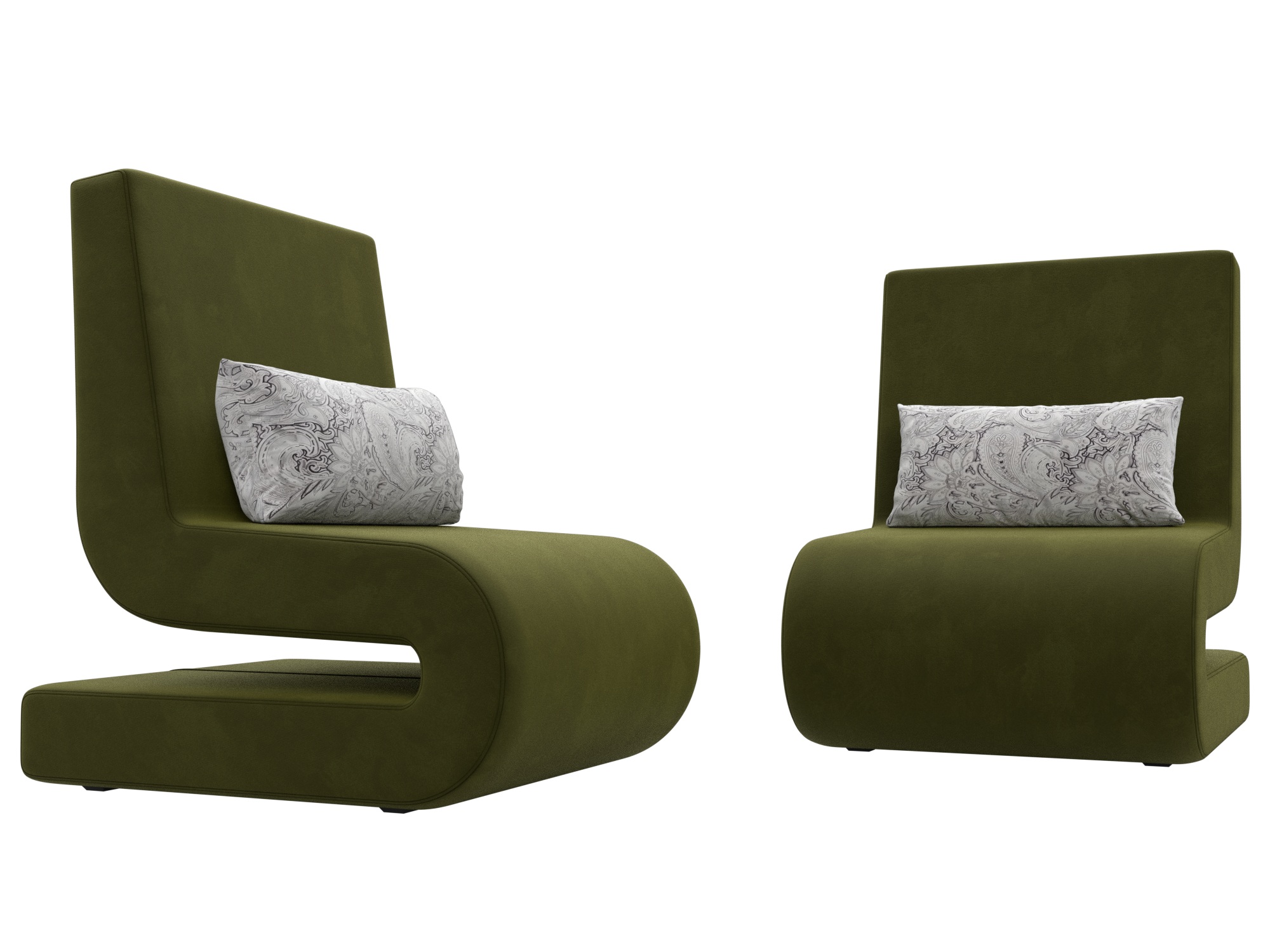 Кресло Волна (2 шт.) Зеленый/Серый, Микровельвет\Велюр