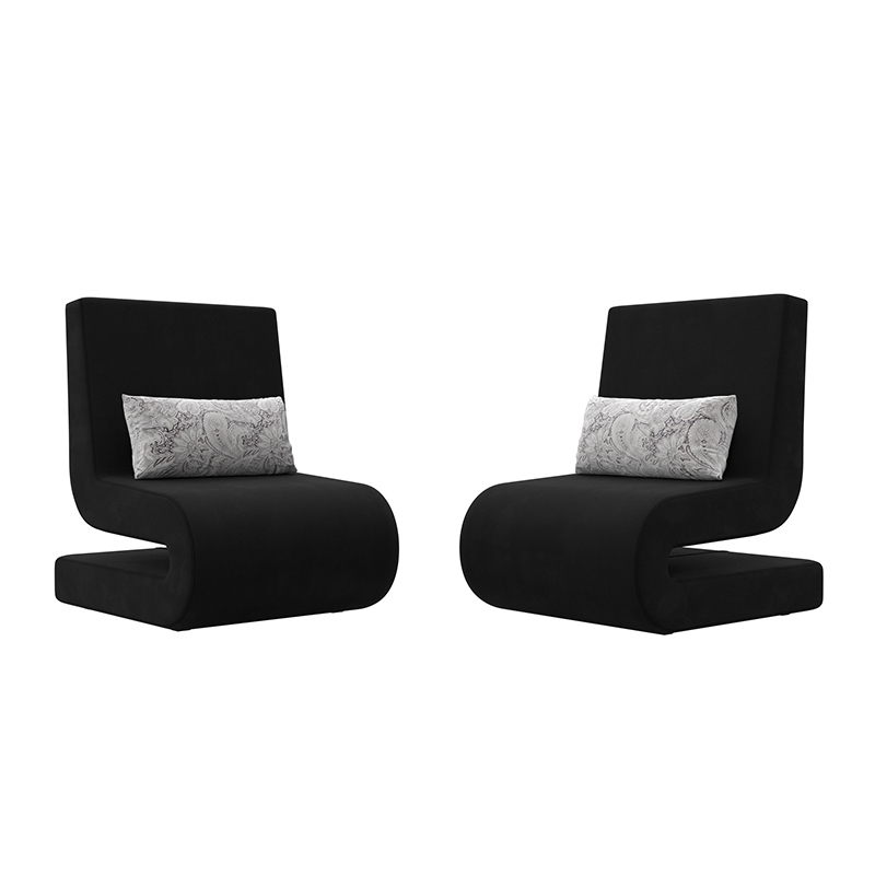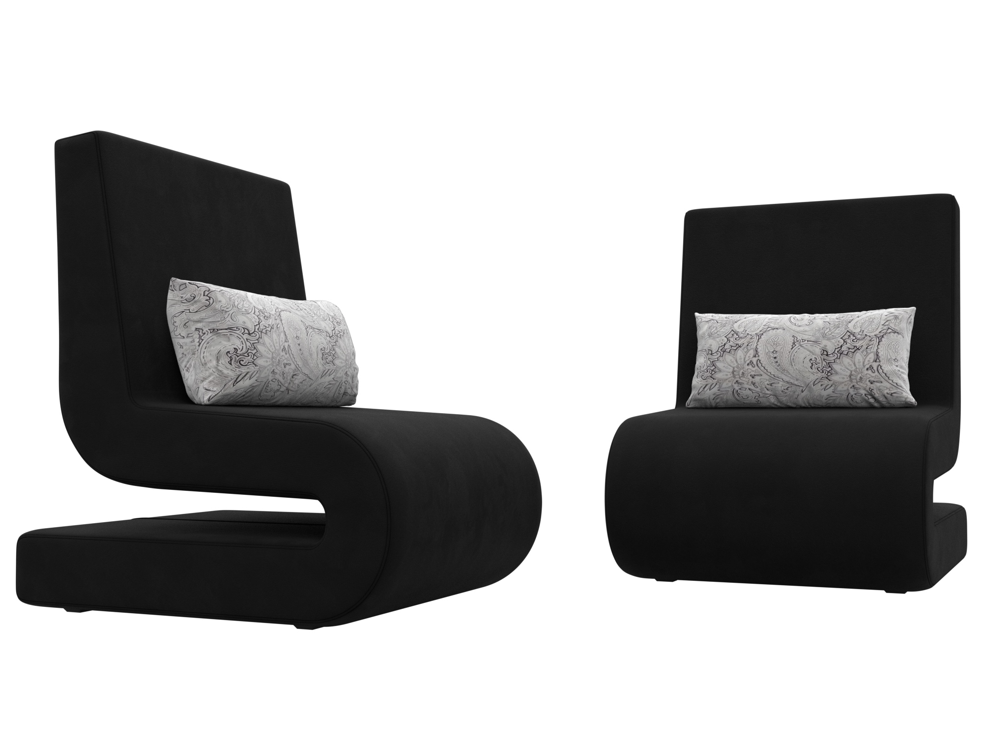 Кресло Волна (2 шт.) Черный/серый, Микровельвет\Велюр