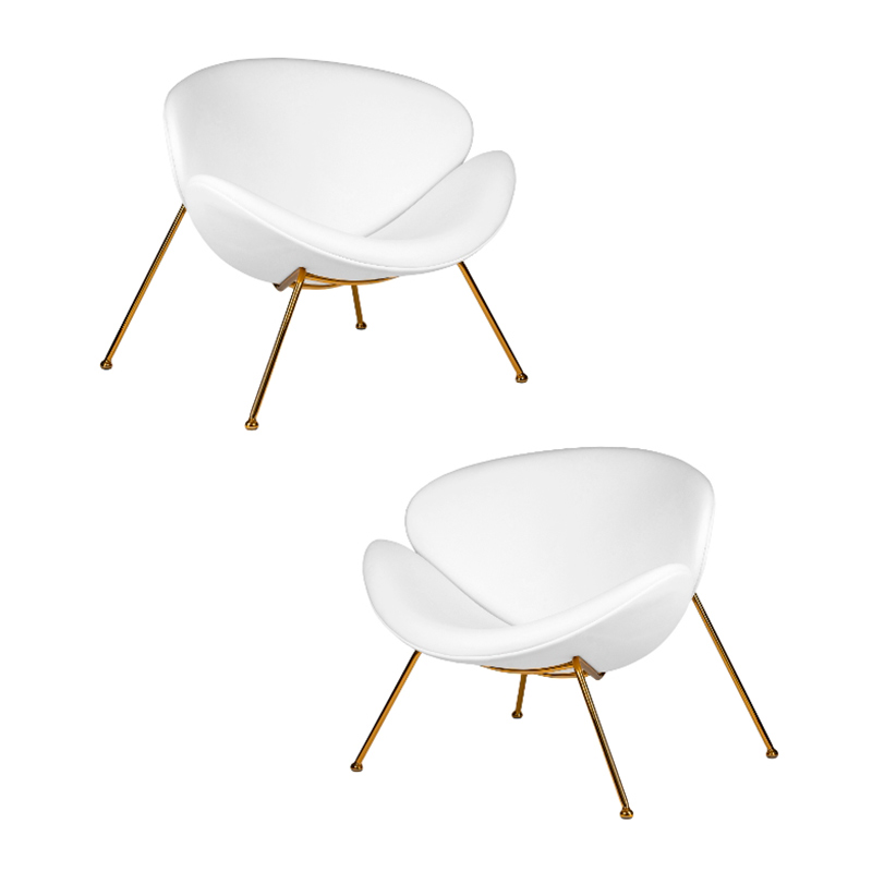 Набор 2 шт Кресло дизайнерское DOBRIN EMILY, белый винил YP17, золотое основание