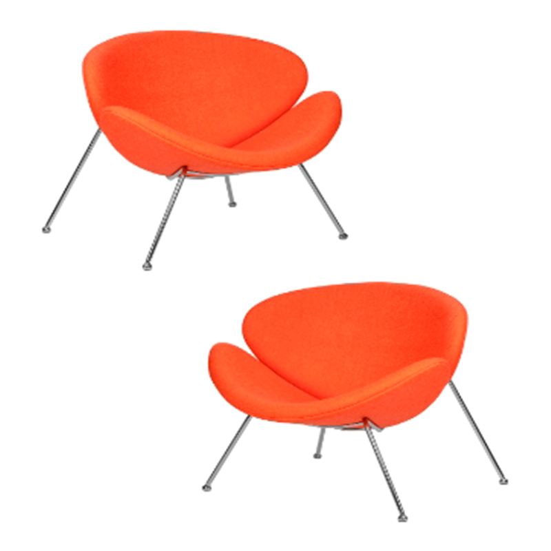 Набор 2 шт Кресло дизайнерское DOBRIN EMILY, оранжевая ткань AF, хромированная сталь