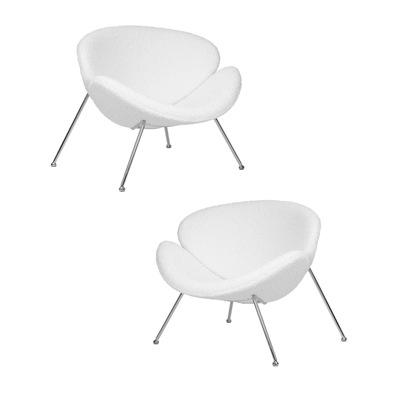 Набор 2 шт Кресло дизайнерское DOBRIN EMILY, белый (букле) ткань , хромированная сталь