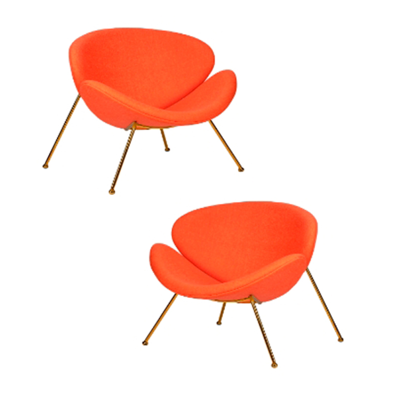 Набор 2 шт Кресло дизайнерское DOBRIN EMILY, оранжевая ткань AF, золотое основание