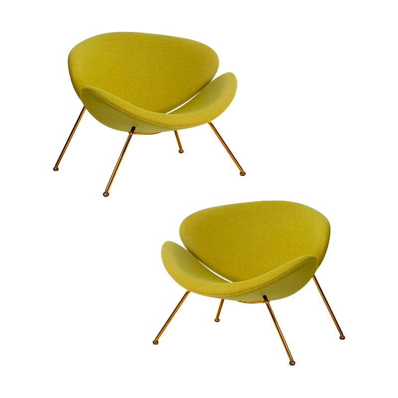 Набор 2 шт Кресло дизайнерское DOBRIN EMILY, светло-зеленая ткань AF3, золотое основание