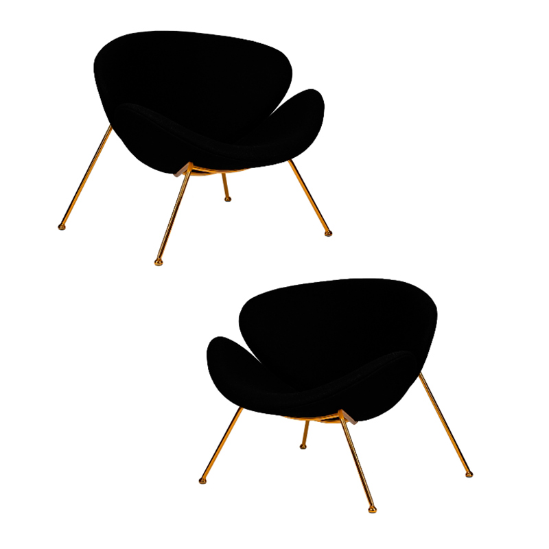 Набор 2 шт Кресло дизайнерское DOBRIN EMILY, черный ткань AF9, золотое основание