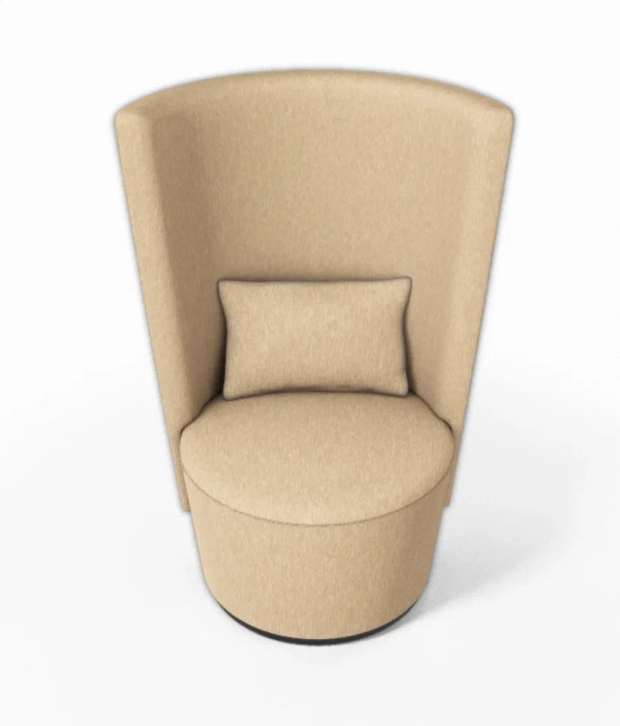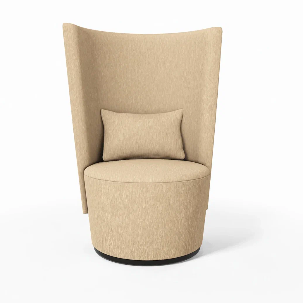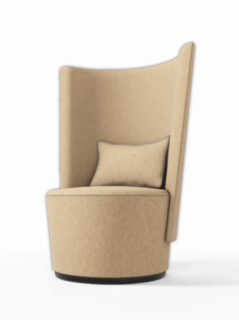 Запросить индивидуальное предложениеЭффектное поворотное кресло с высокой спинкой, функция вращения на 180° с автоматическим возвратом спинки в исходное положение. Платформа из массива дерева черного цвтеа. Тактильные обивки с показателем износостойкости 100.000 мартиндейл и защитой от загрязнений - оптимальный выбор для использования как в частном, так и общественном интерьере: ресторане, лобби отеля, приемной офиса.