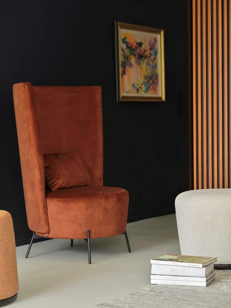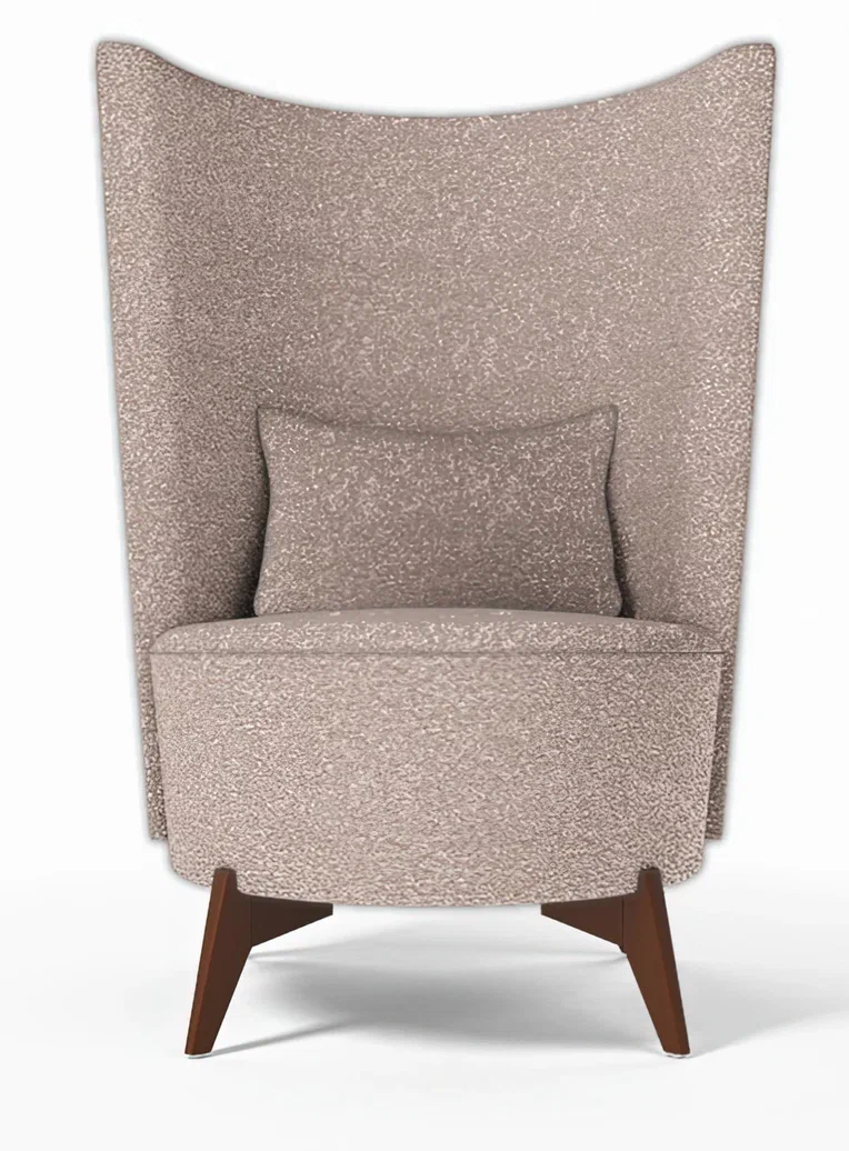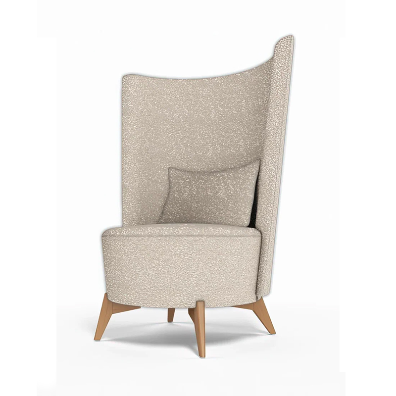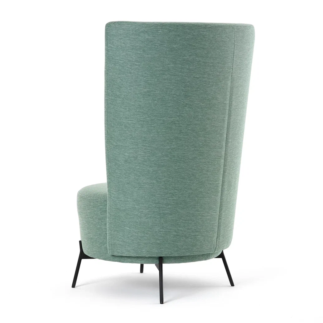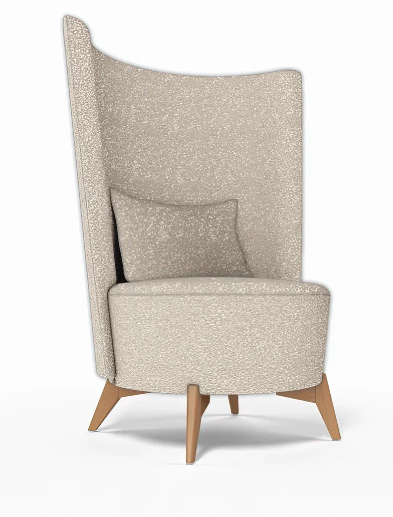 Запросить индивидуальное предложениеКомфортное кресло с высокой спинкой на точеных ножках из массива бука (7 оттенков), металла (22 цвета) или черной платформе из массива создает ощущение уединения и защищенности в любом открытом пространстве. Обивки: шелковистый микровелюр (88.000 мартиндейл) и фактурные ткани со свойствами easy clean с защитой от загрязнений. Секрет пружинящего комфорта модели: эластичные ремни спинки, горизонтальные пружины nosag и мягкий наполнитель из 4 видов пены.