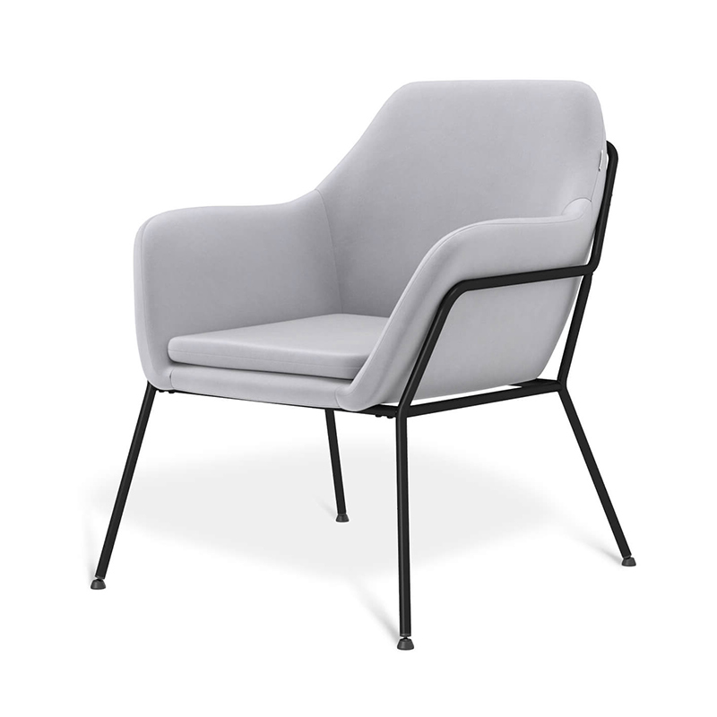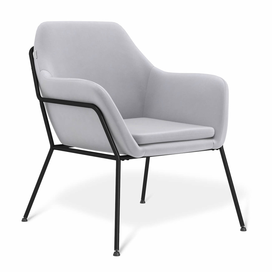 Дизайн модели основан на выдержанной, но контрастной цветовой гамме. Линии металлического каркаса, опоясывающие мягкое сидение, делают дизайн модели особенно стильной. Ножки плавно переходят в подлокотники и спинку, подчеркивая каждый изгиб кресла. Спинка, отклоненная под небольшим углом, и мягкая подушечка на сидении дают еще больший комфорт при использовании.