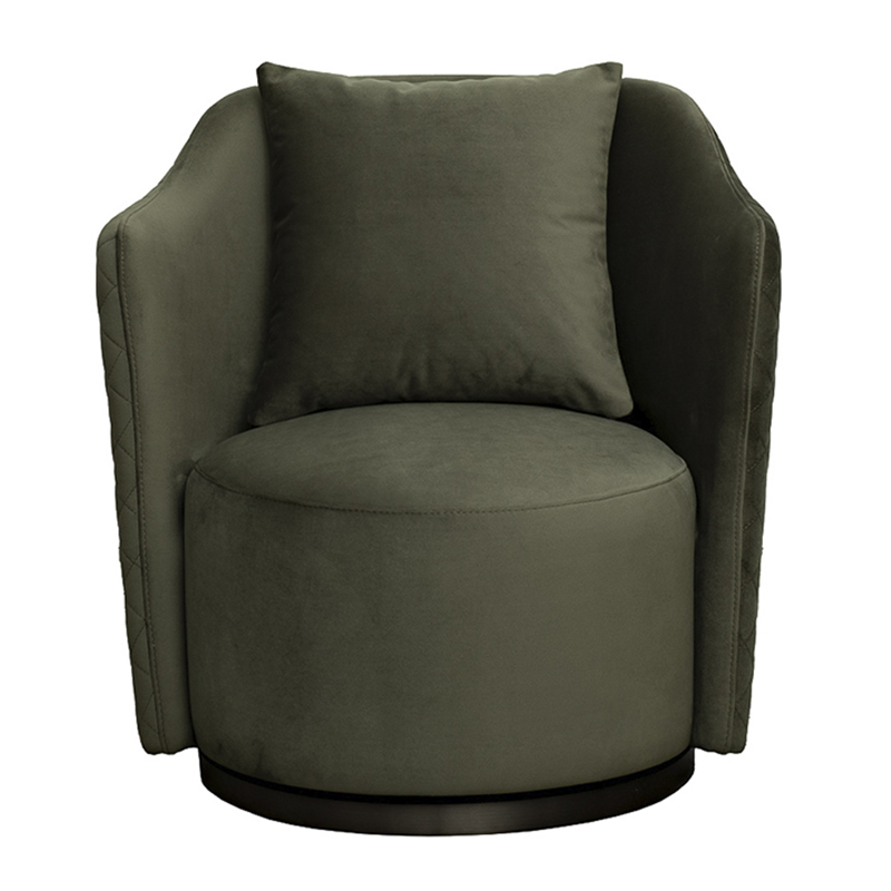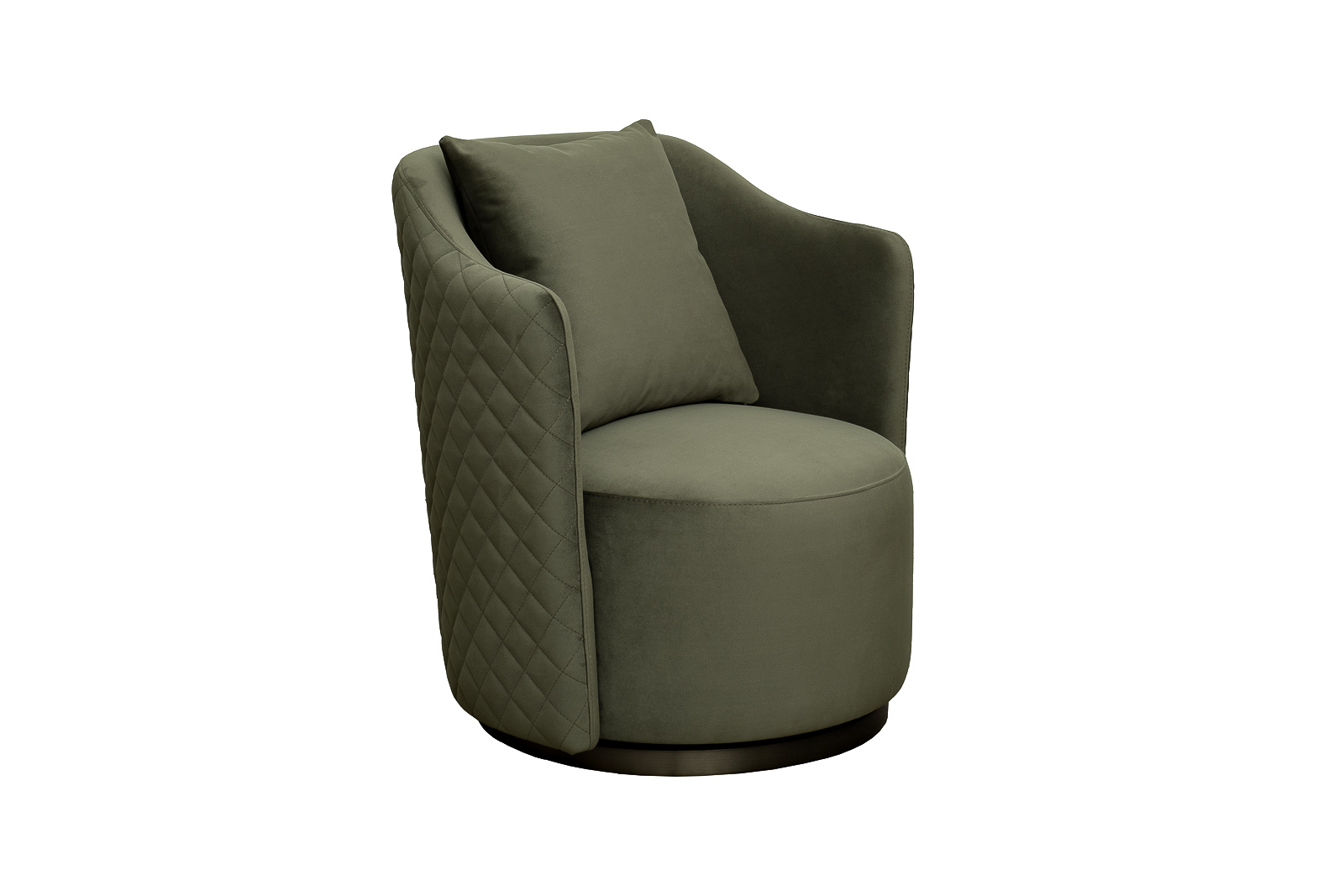 Запросить индивидуальное предложениеМодель VERONA, обитая велюром в зеленом оттенке, объединяет в себе качество, стиль, оригинальный дизайн, современные мотивы, удобство и функциональность. Этот велюровый материал прочный, красивый, приятный на ощупь. Комфортная форма сидения позволяет удобно расположиться в кресле без ощущения скованности в спине. Стильное зеленое кресло идеально впишется в гостиную, спальню, кабинет, салон красоты, дизайн интерьера которых выполнен в современных стилях — арт-деко, неоклассика, контемпорари, фьюжн, бохо. Купить готовое кресло в гостиную или заказать кресло в ткани на выбор можно на нашем сайте. Диаметр металлической части основания - 58см, высота - 3,5см. В стандартном исполнении: обивка из ткани коллекции Garda Decor Colt1011-TZEL, основание - нержавеющая сталь цвет бронза.