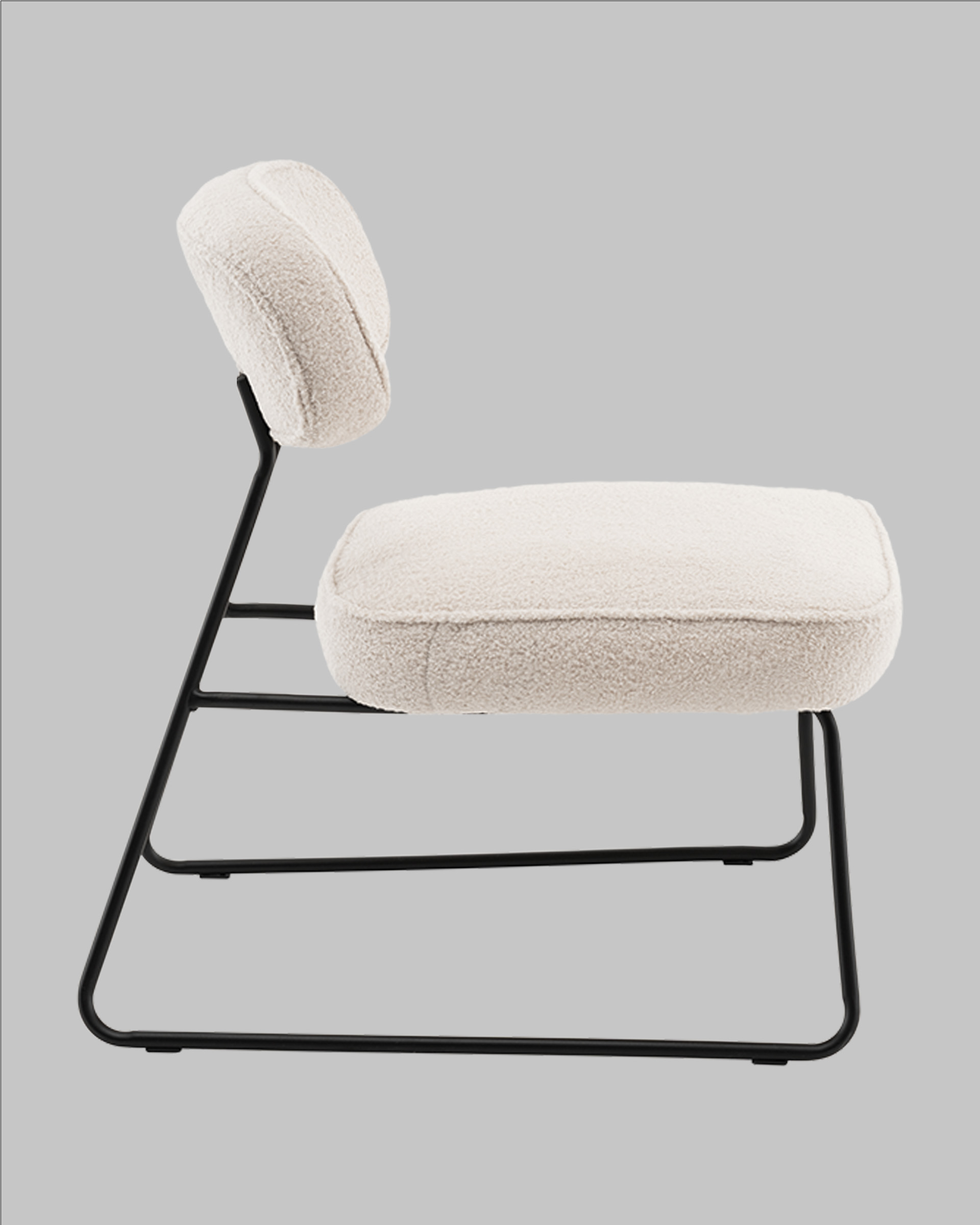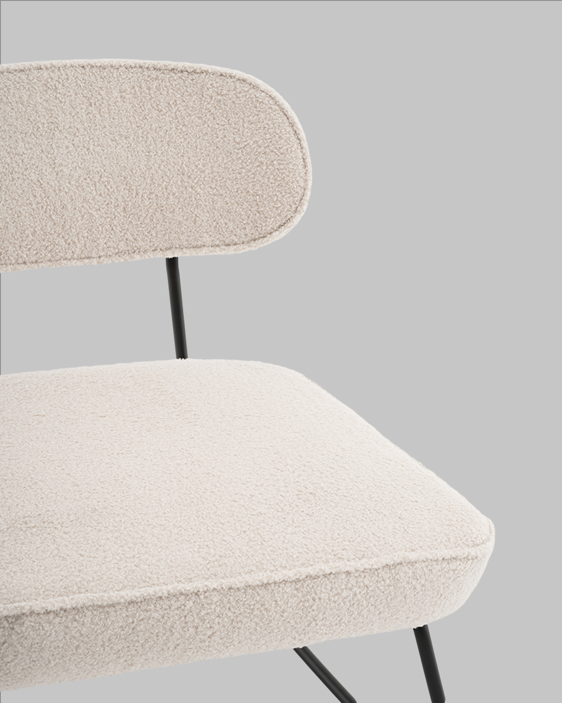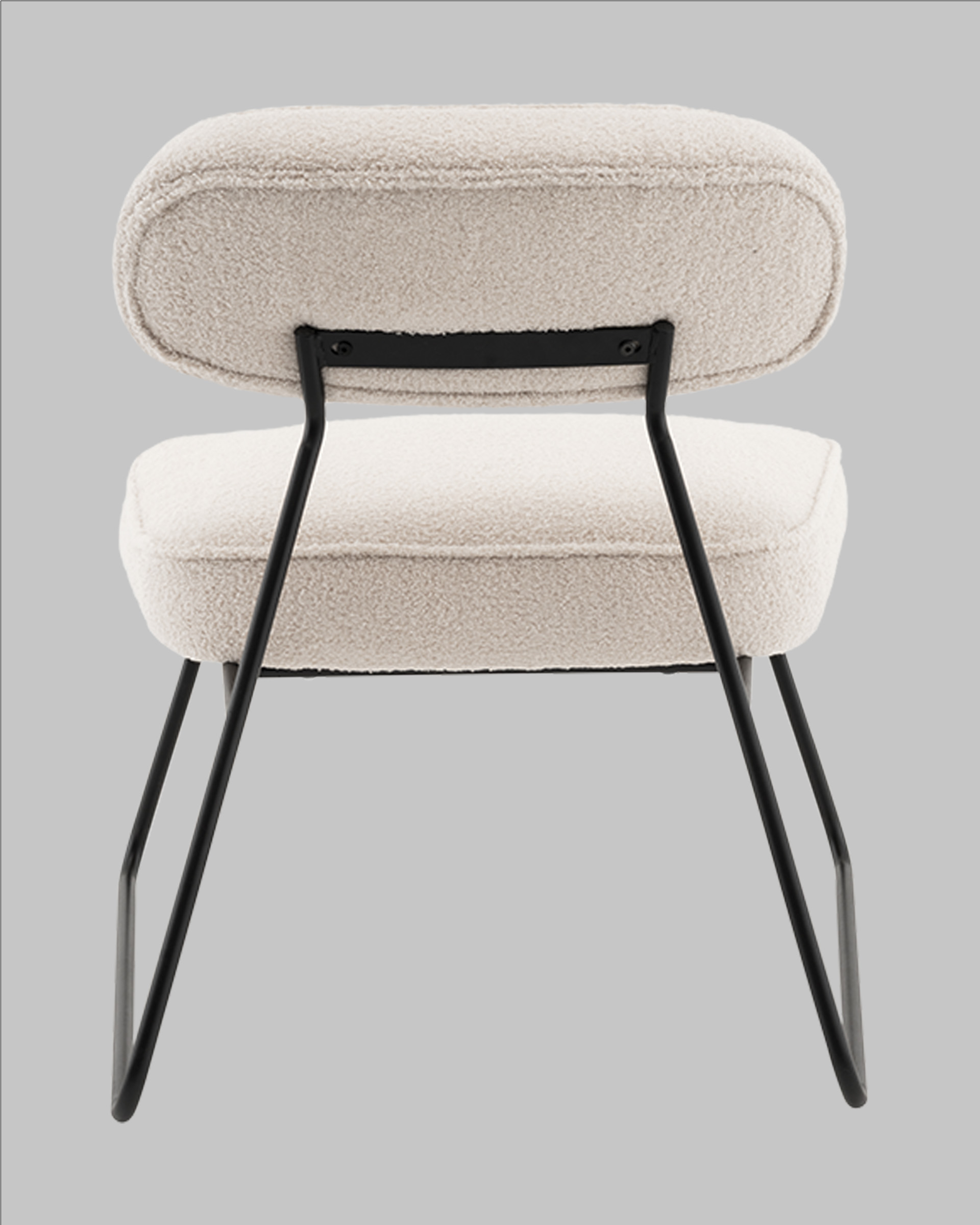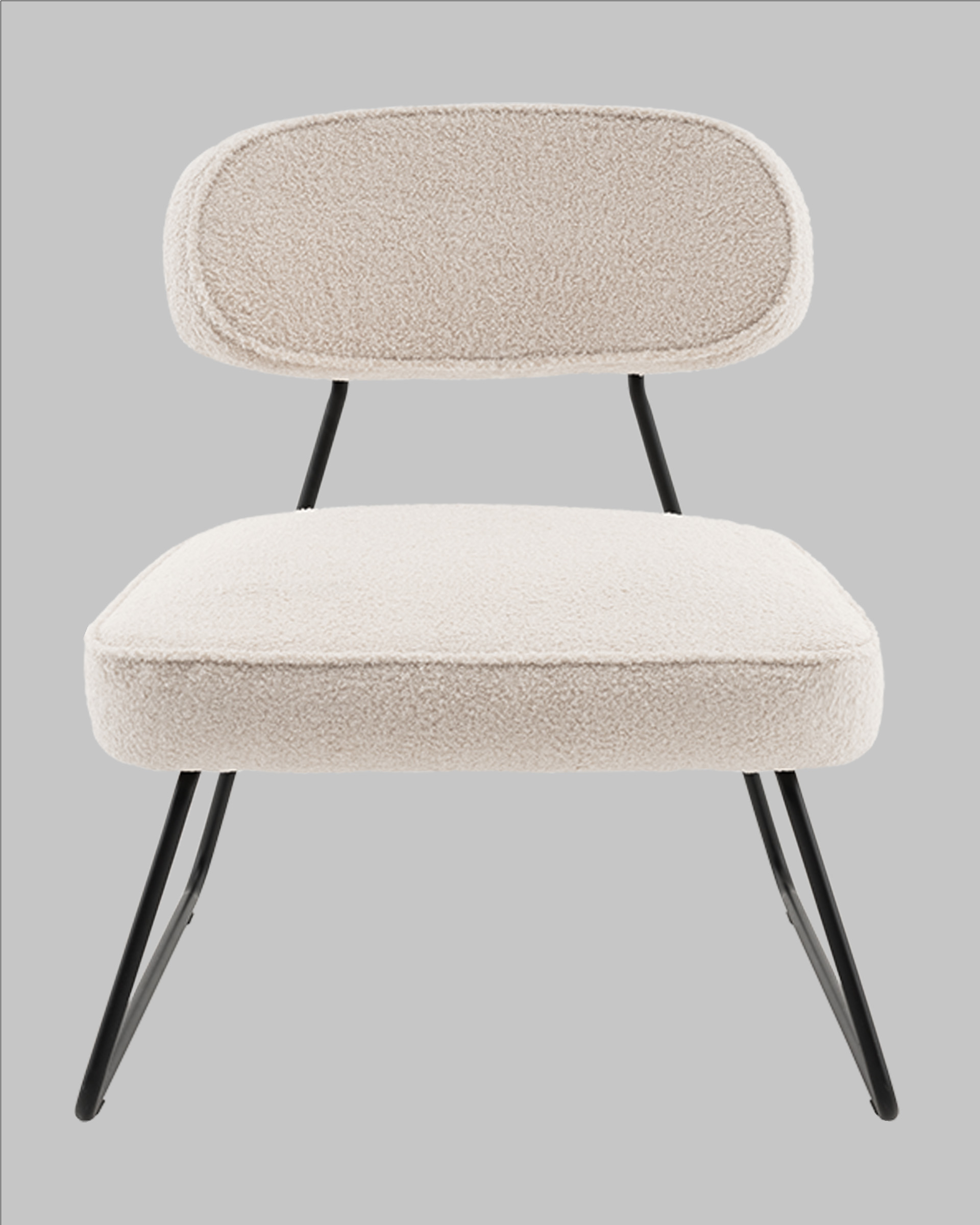 Кресло выполнено в трендовой обивке из ткани букле бежевого оттенка — это не только визуально тёплое, но и тактильно приятное решение для создания уюта в любом интерьере. Сочетание мягкого сиденья и эргономичной спинки - всё, что необходимо для максимального комфорта.
