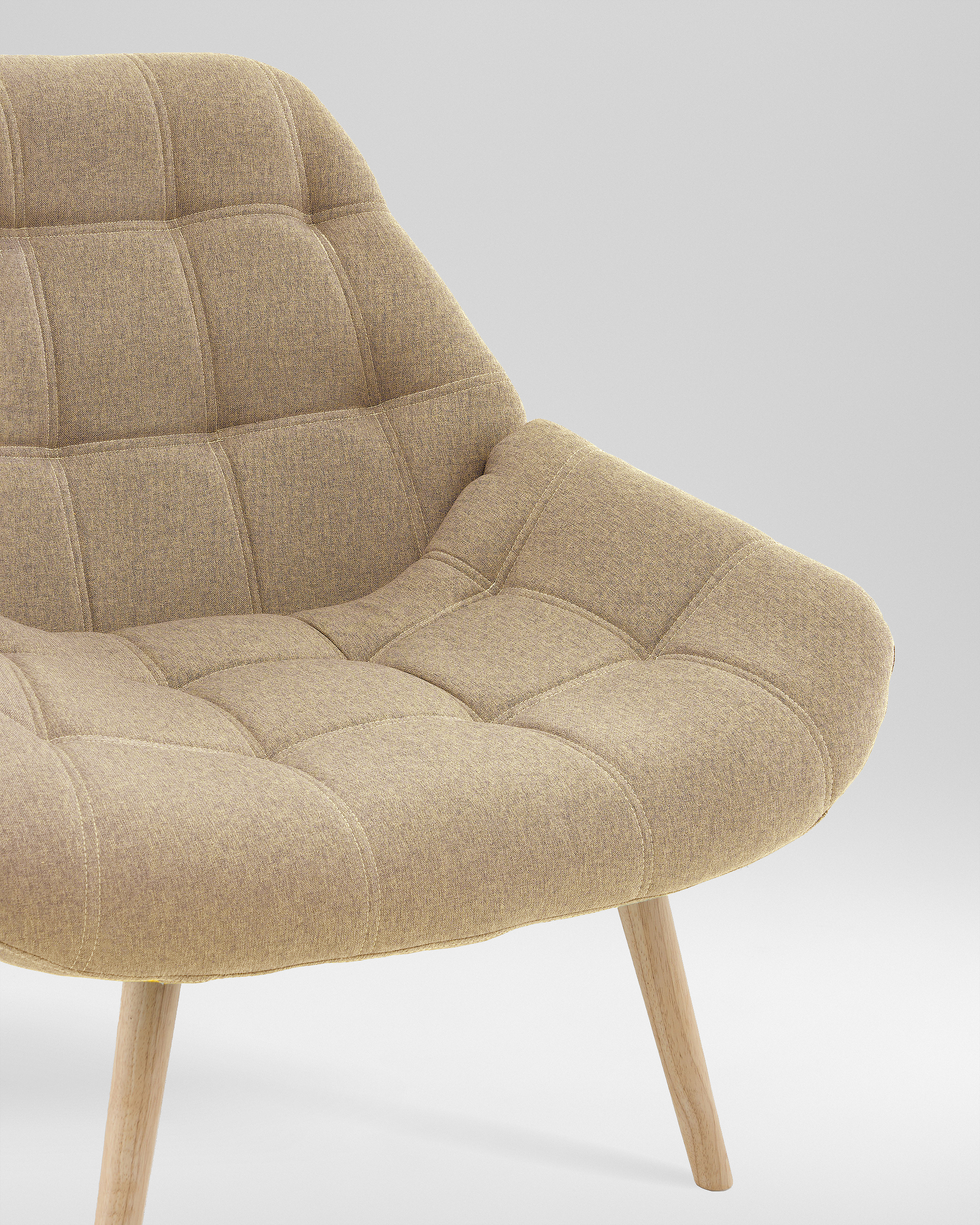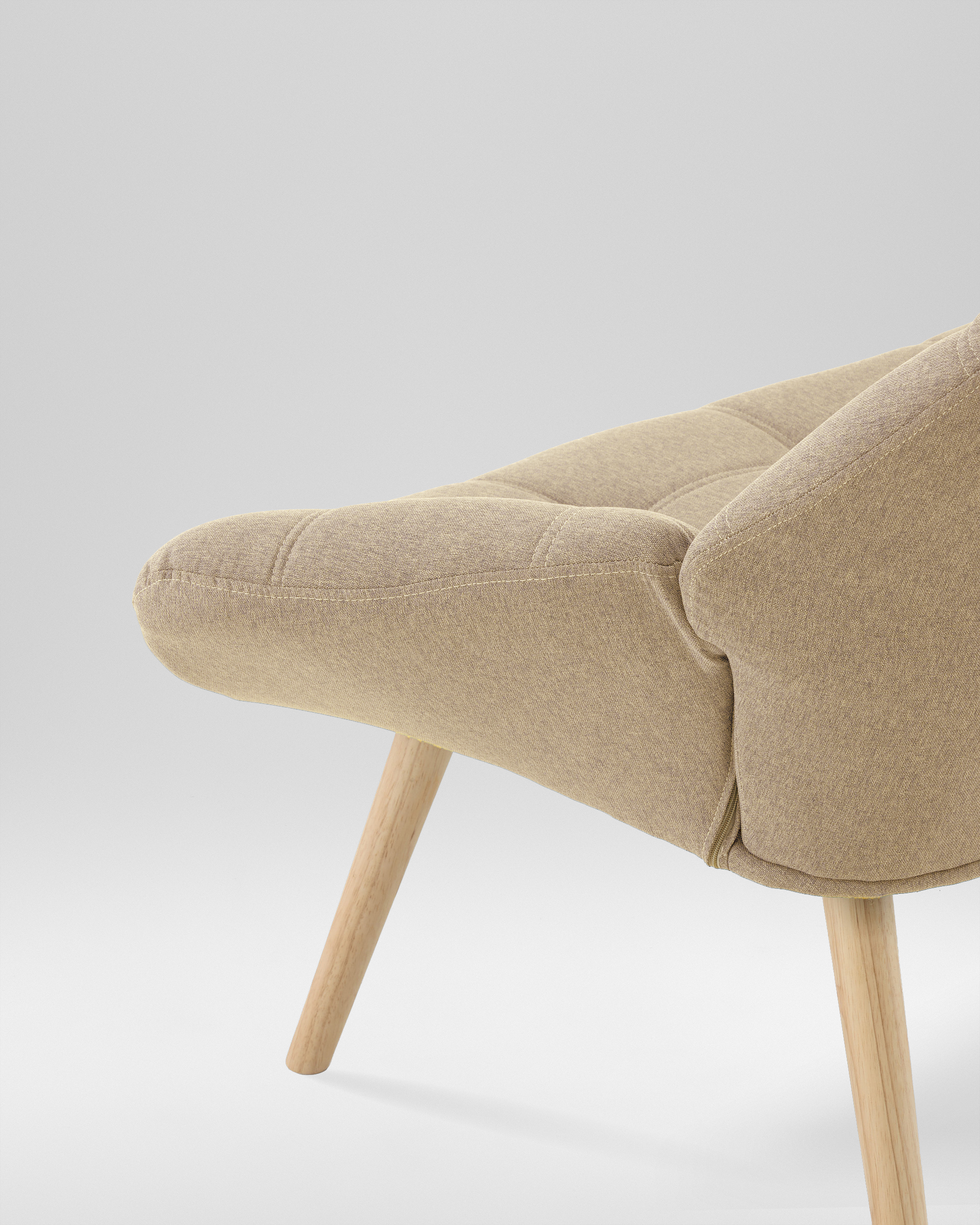 Широкое посадочное место и комфортная спинка обеспечивают удобство даже при длительном отдыхе. Каркас крепко установлен на четырёх ножках из массива гевеи — они прочные, устойчивые и не скользят благодаря защитным подпятникам, которые, к тому же, бережно относятся к напольным покрытиям.