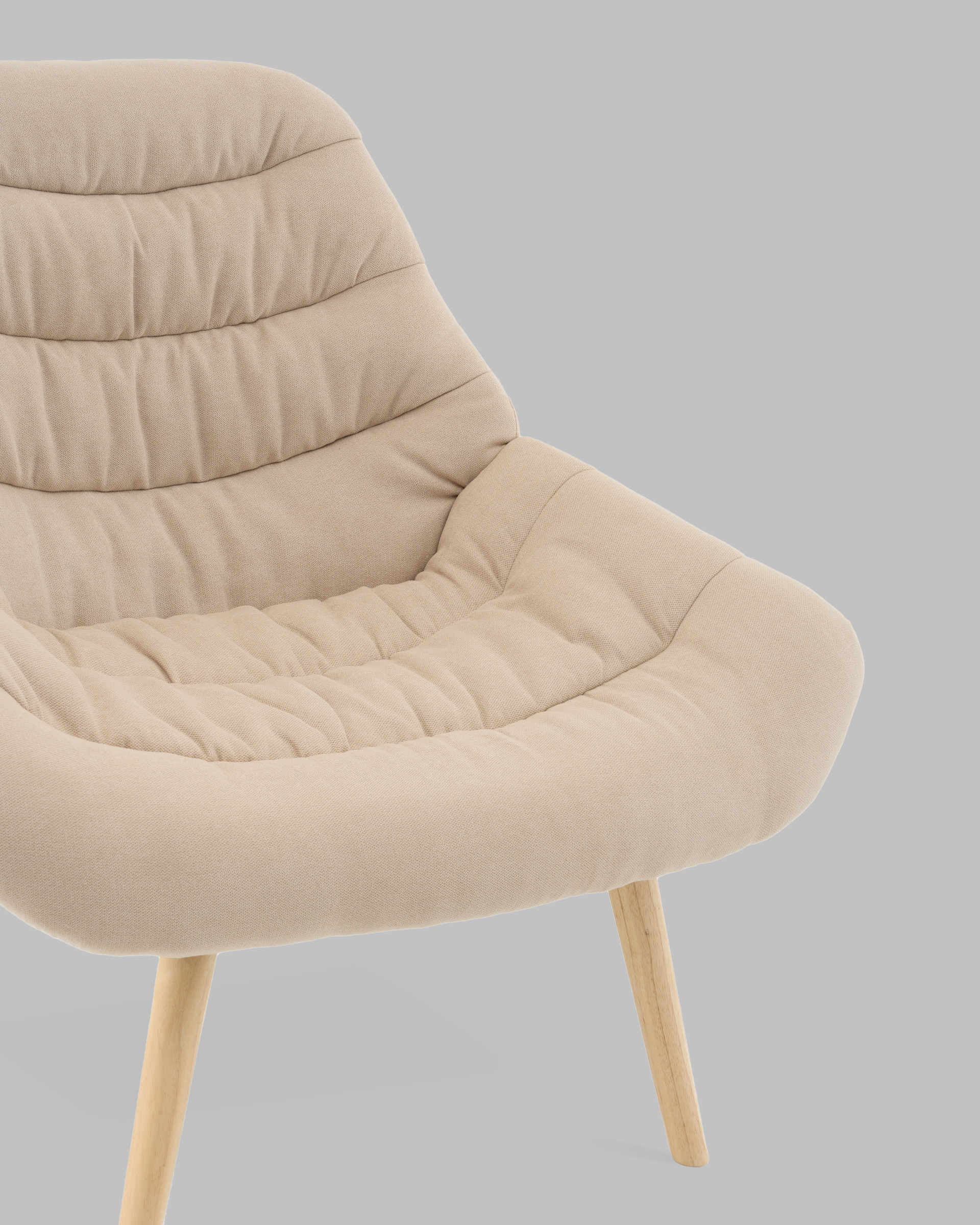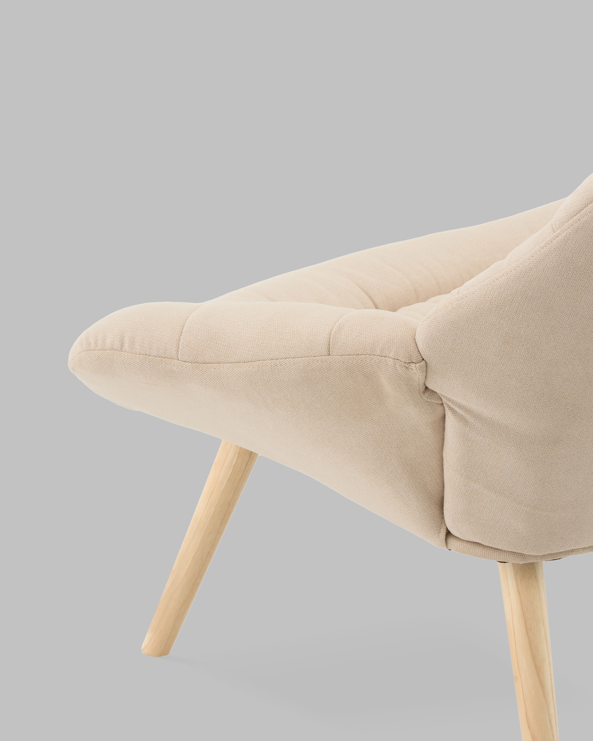 Ножки из массива гевеи не только эстетичны, но и прочны — кресло выдерживает до 120 кг. Подпятники на ножках защищают напольное покрытие от царапин и предотвращают скольжение. Это делает кресло отличным выбором для повседневного использования.
