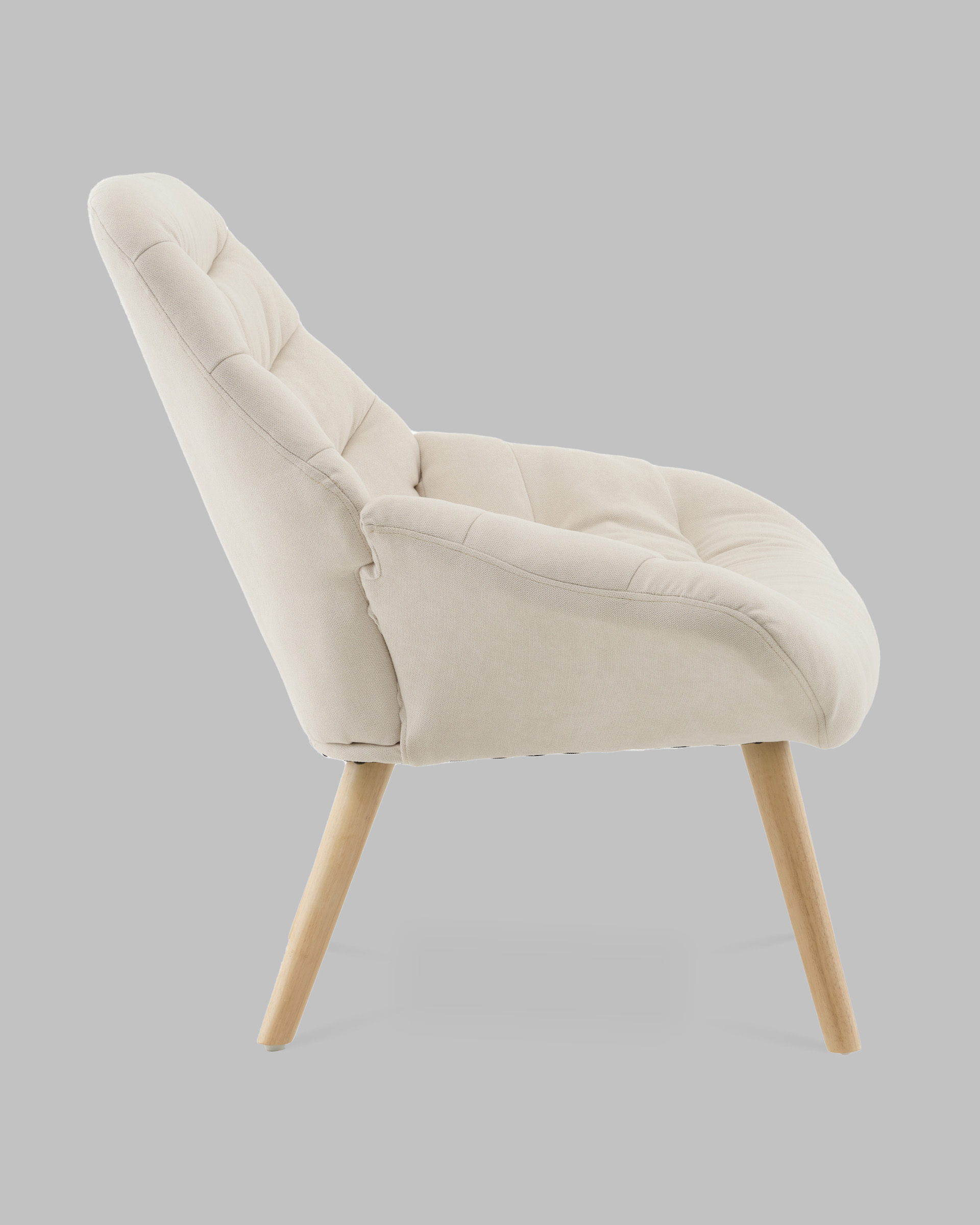 Ножки из массива гевеи не только эстетичны, но и прочны — кресло выдерживает до 120 кг. Подпятники на ножках защищают напольное покрытие от царапин и предотвращают скольжение. Это делает кресло отличным выбором для повседневного использования.