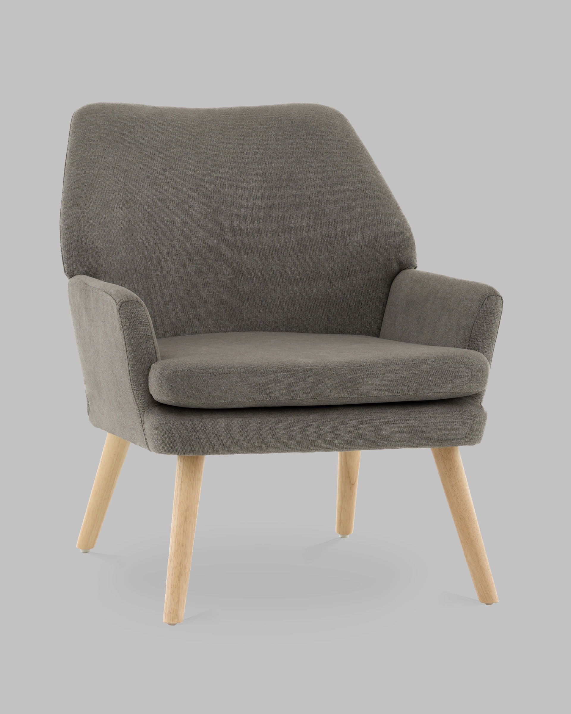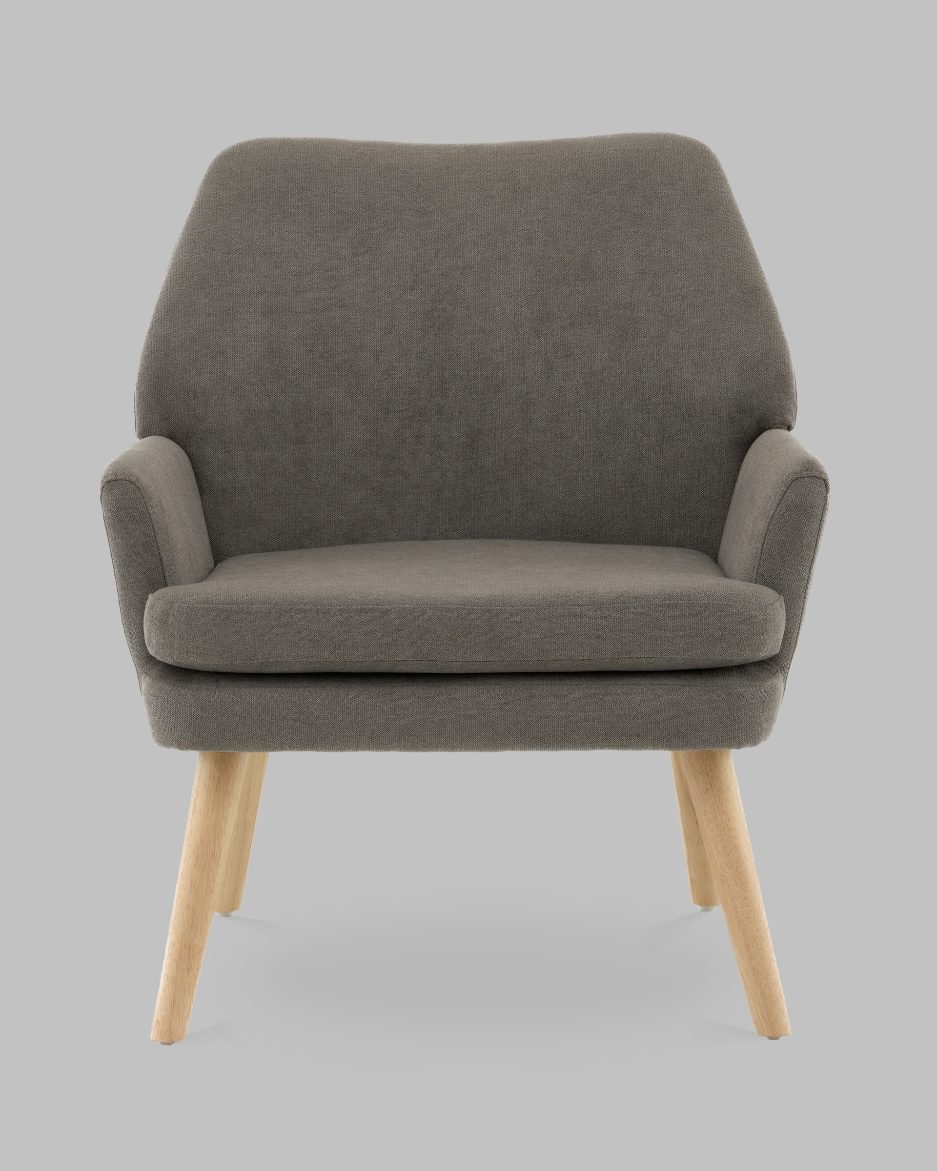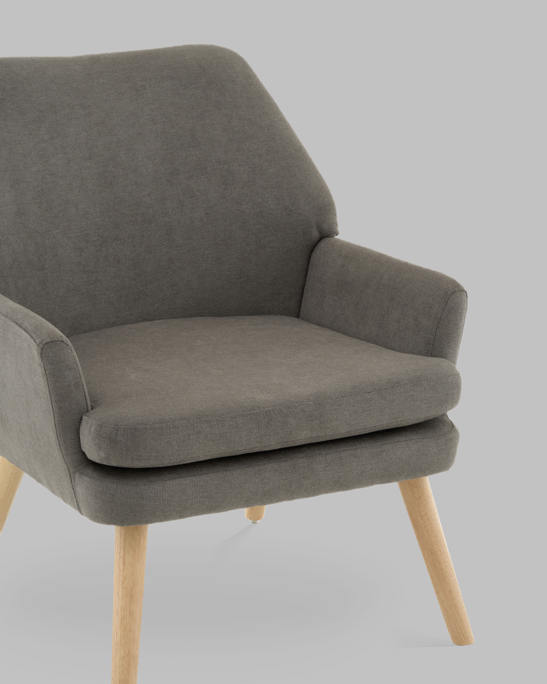 Ножки кресла изготовлены из массива гевеи — прочного и экологически чистого материала. Светлый оттенок дерева вносит в образ естественное тепло и визуальную лёгкость. Подпятники на ножках защищают напольное покрытие от царапин и препятствуют скольжению.