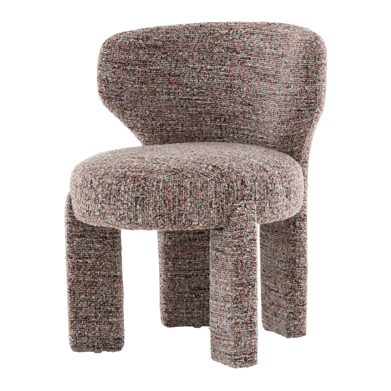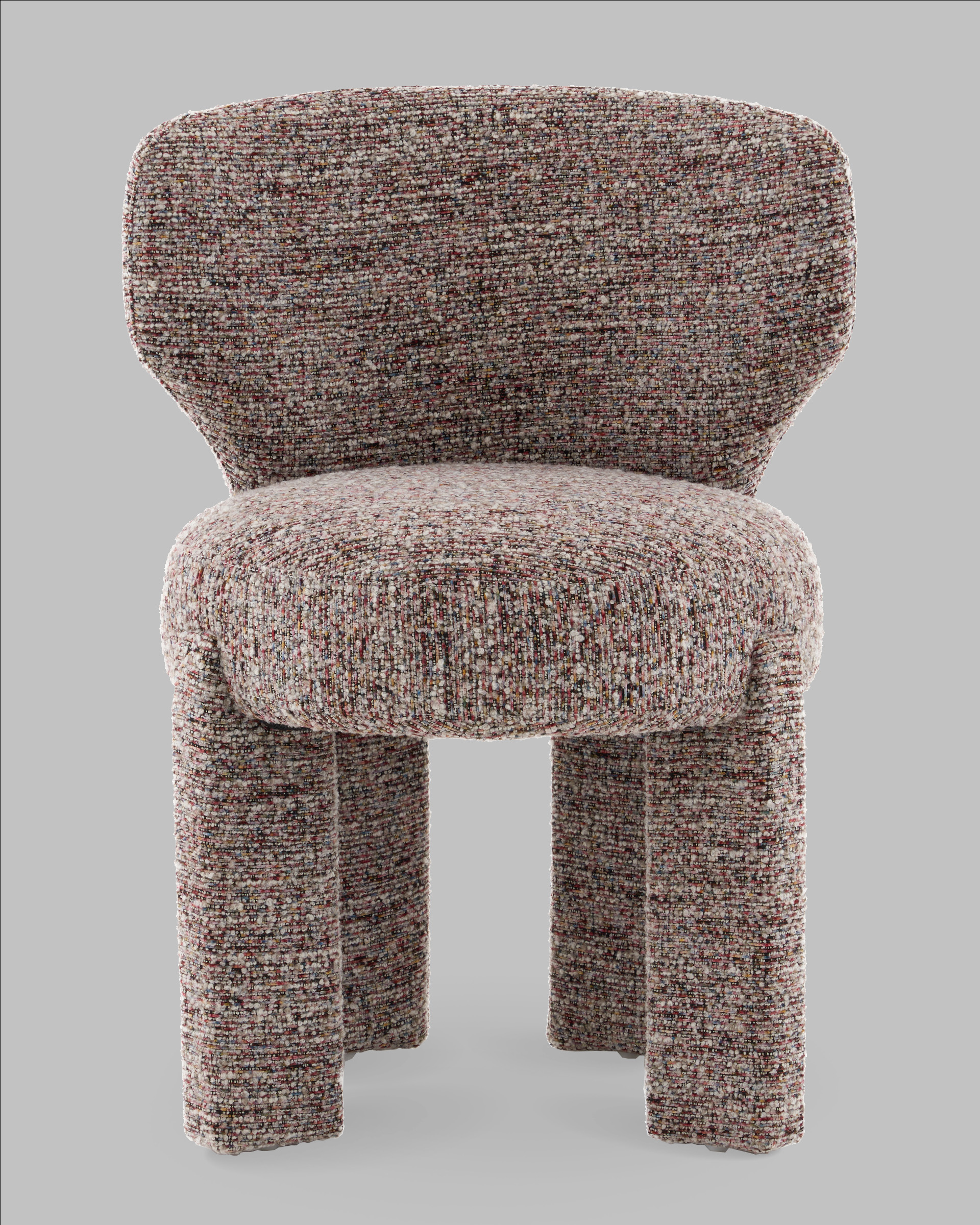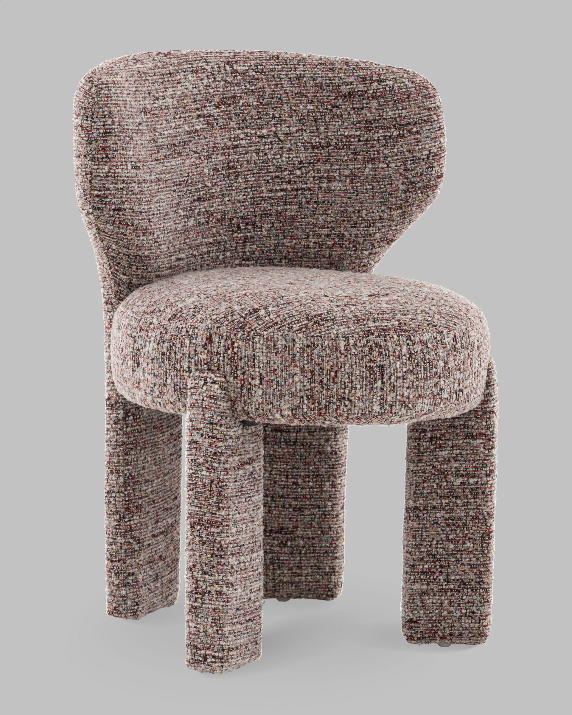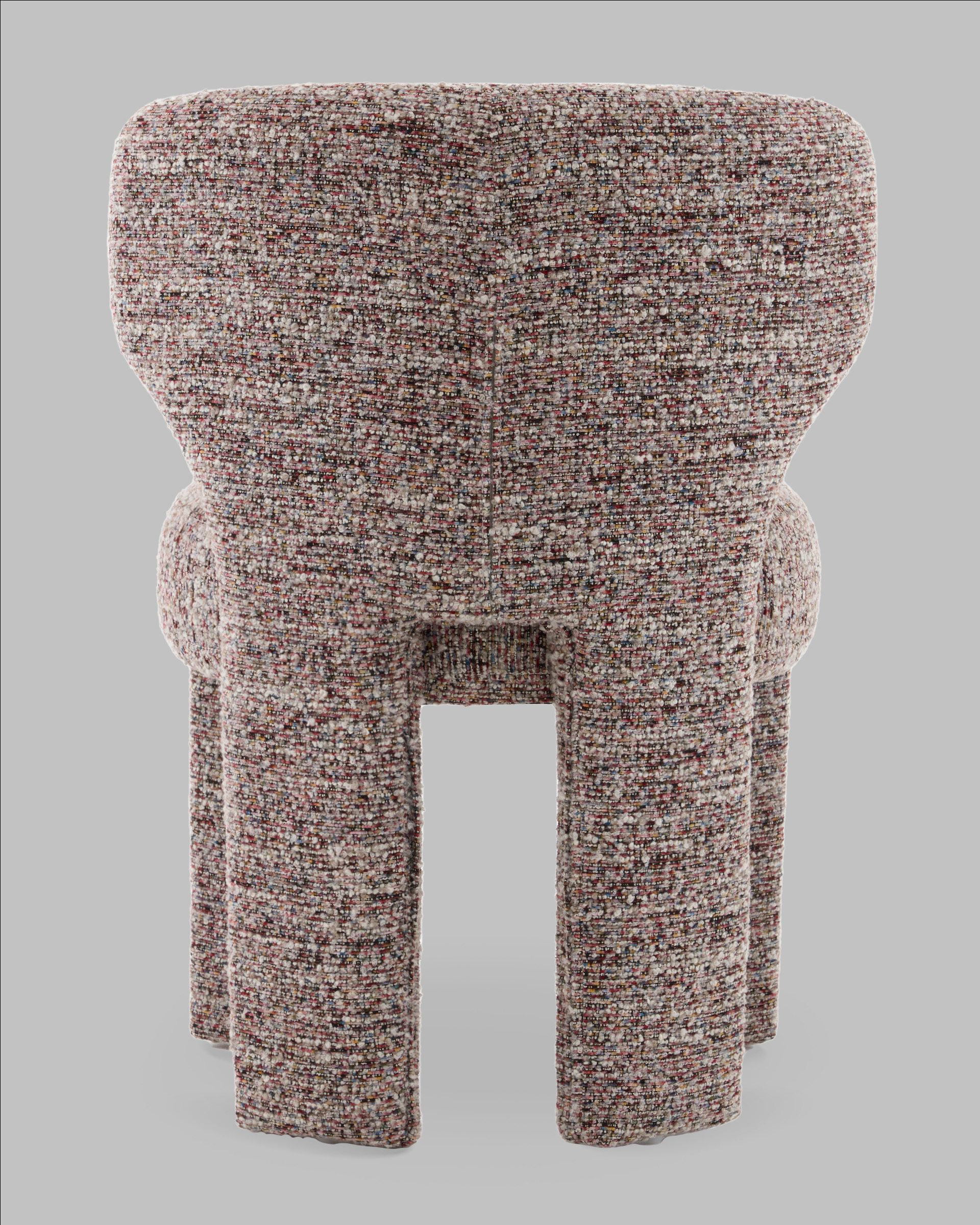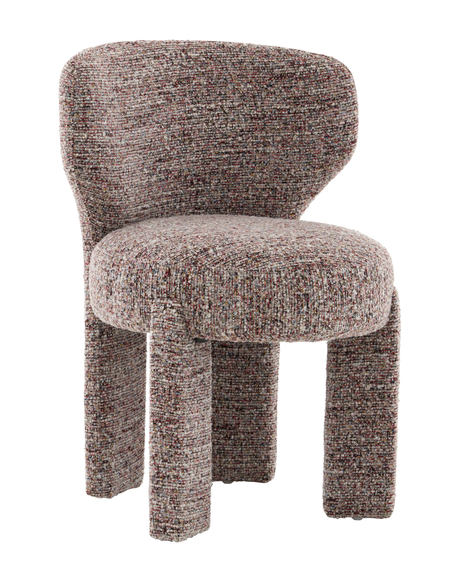 Стул Lainr в обивке из мягкого букле в оттенке бордовый меланж сочетает в себе оригинальность и комфорт. Его необычная форма со скругленной спинкой и округлым сиденьем подчеркивает дизайнерский подход и привносит визуальное разнообразие в обстановку.