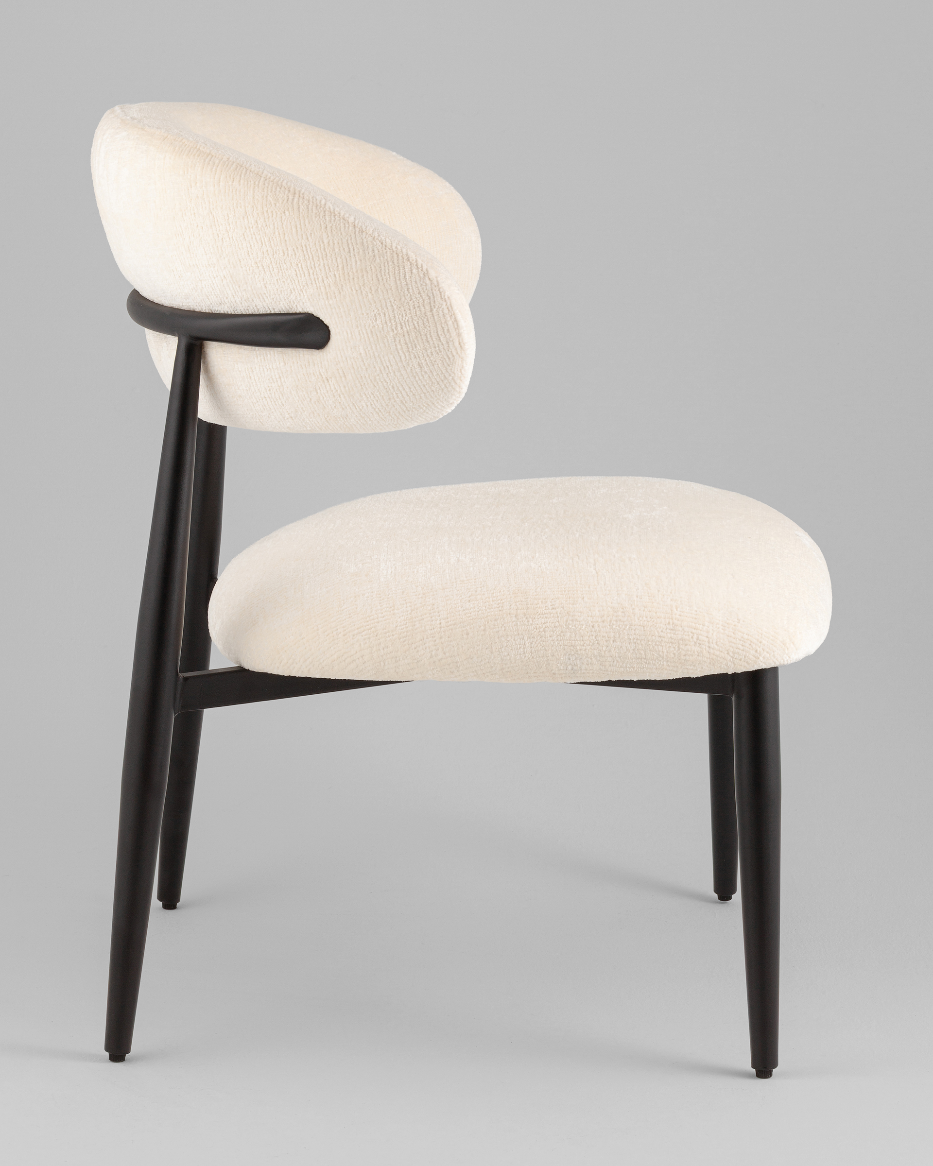 Кресло Ayla — это лаконичный дизайн с мягкими линиями и скандинавским характером. Его округлая спинка и просторное сиденье обеспечивают максимальный комфорт, а черные металлические ножки добавляют устойчивости и визуального контраста. Стиль модели можно отнести к современному минимализму — актуальное решение для тех, кто ценит эстетику и функциональность.