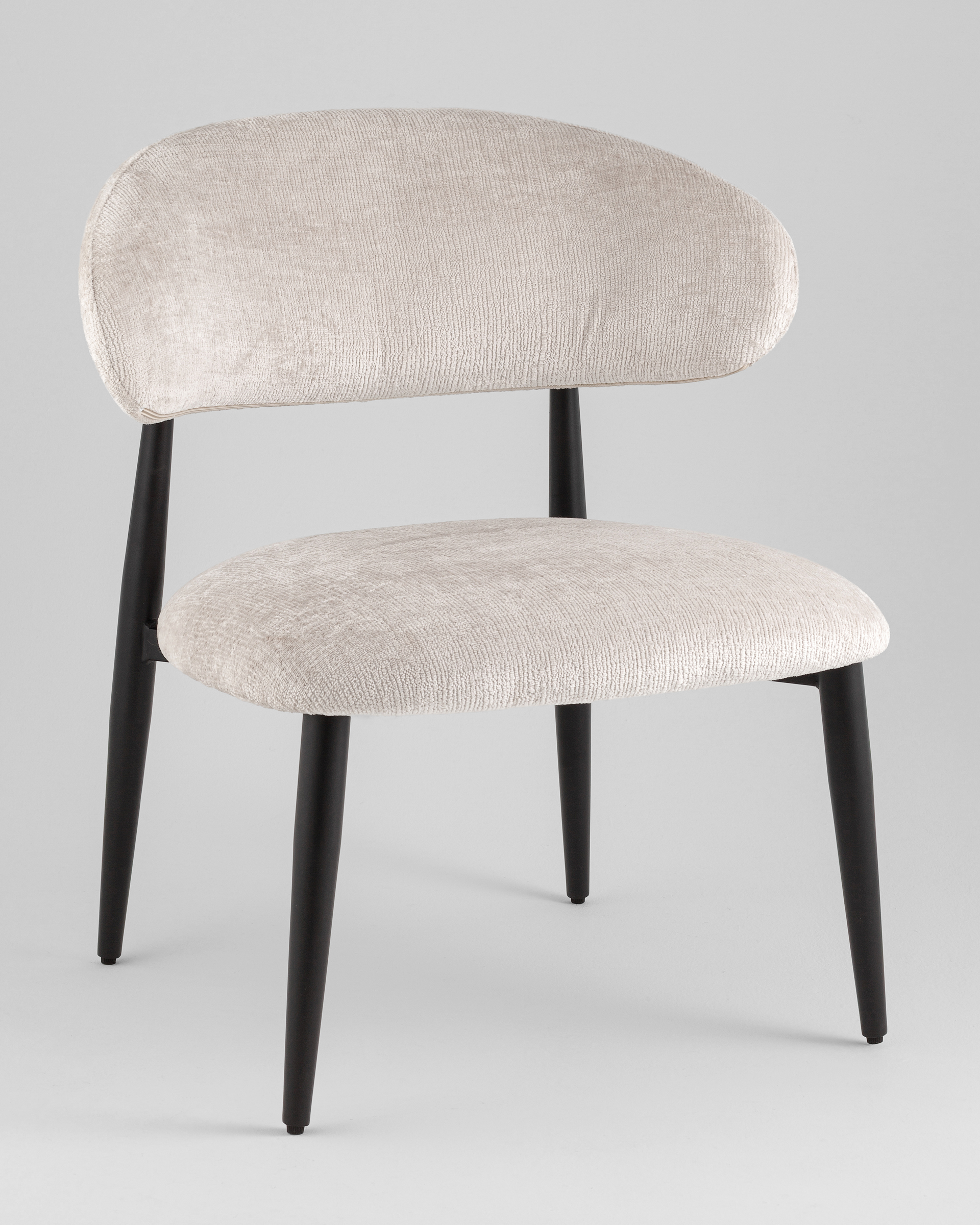 Полукруглая спинка поддерживает поясницу и позволяет удобно расположиться, а широкое сиденье обеспечивает расслабленную посадку. Металлические ножки с подпятниками защищают напольное покрытие и выдерживают нагрузку до 120 кг — кресло не только красиво, но и практично.