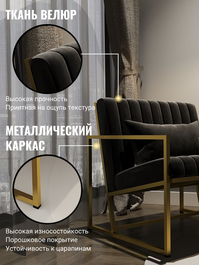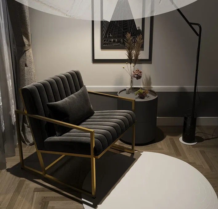Запросить индивидуальное предложение- Уютное дизайнерское кресло с современным дизайном, созданное для комфорта и стиля.