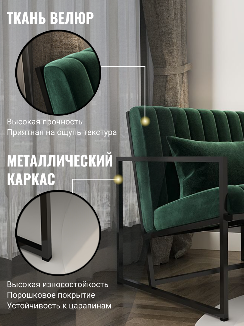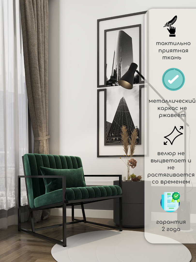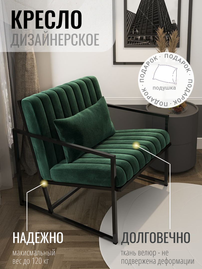 Кресло "Импрессио", черный каркас, изумрудная обивка