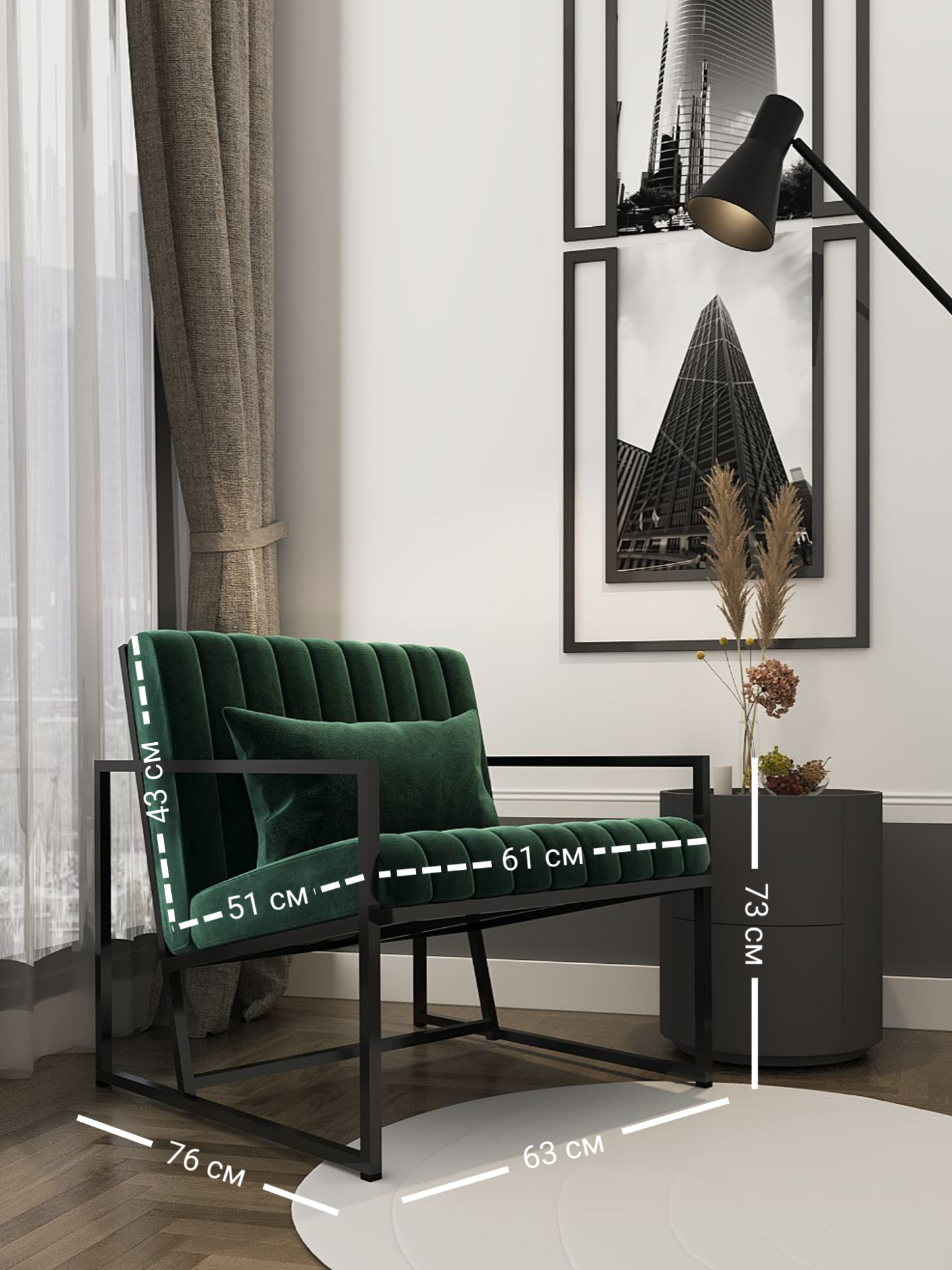 Запросить индивидуальное предложение- Уютное дизайнерское кресло с современным дизайном, созданное для комфорта и стиля.