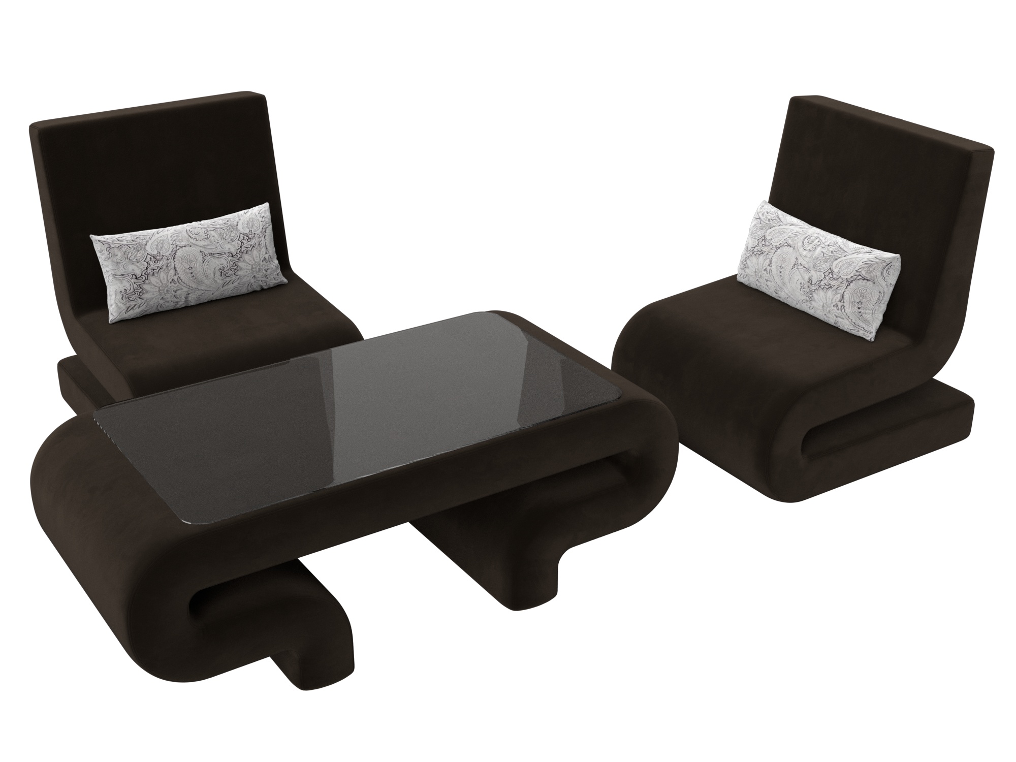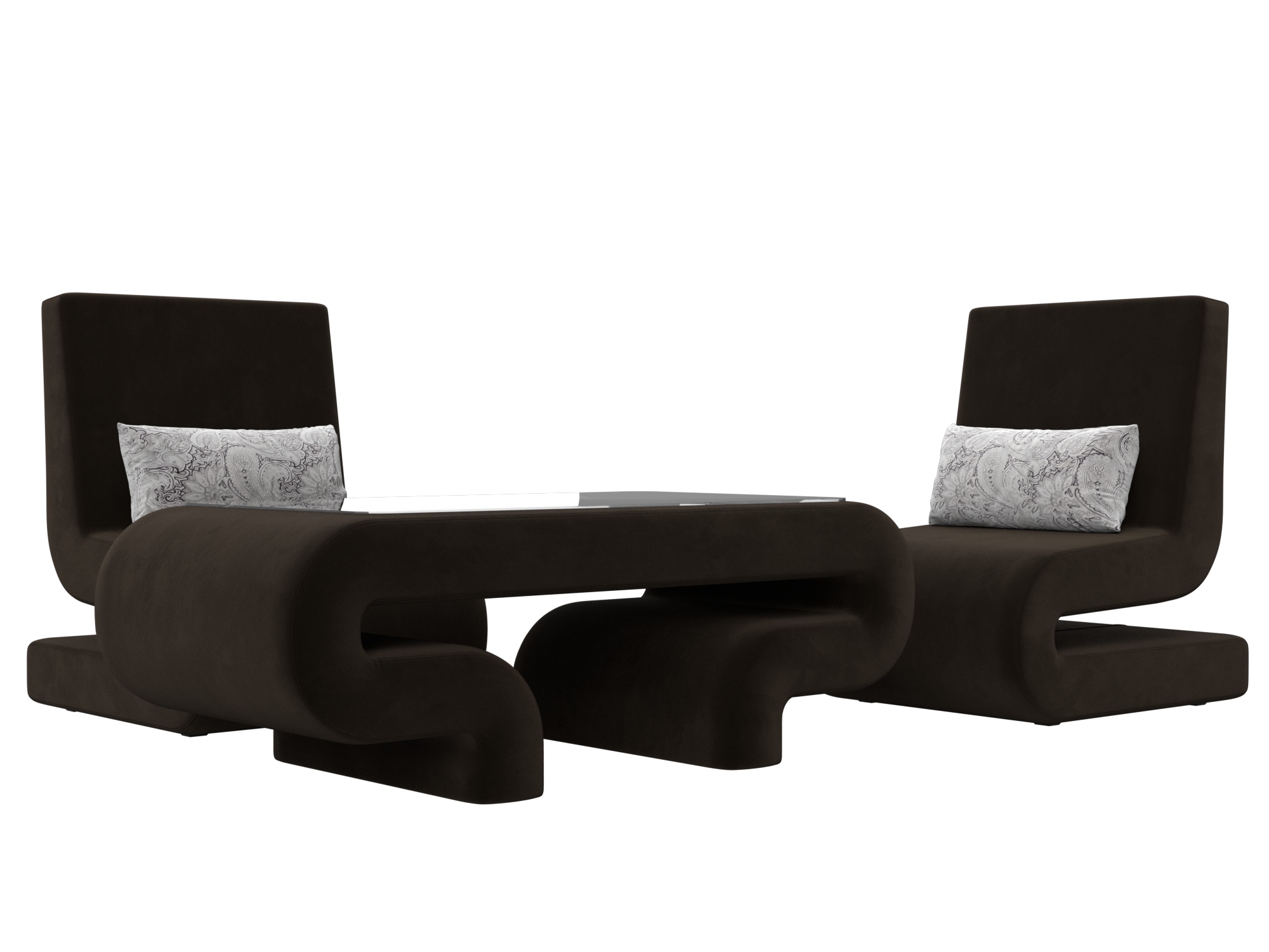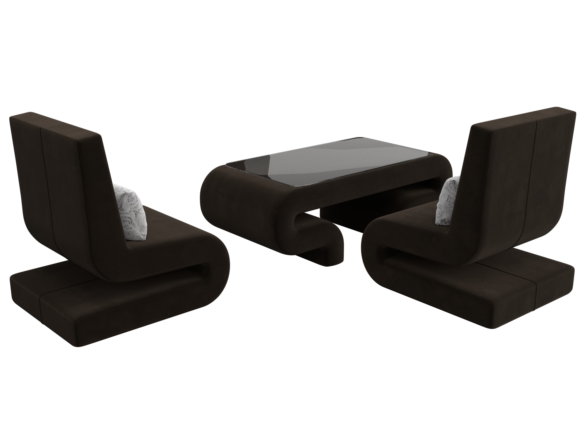 Комплект Волна-3 (стол, 2 кресла), Коричневый; Серый, Микровельвет