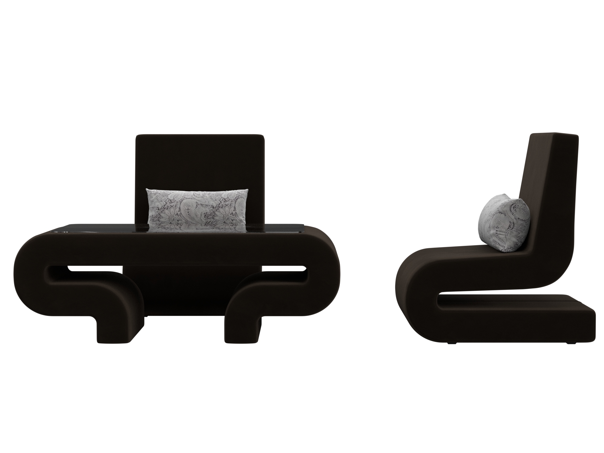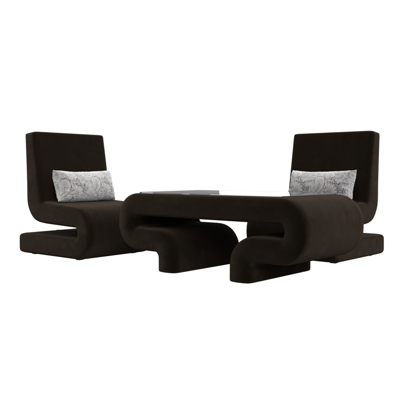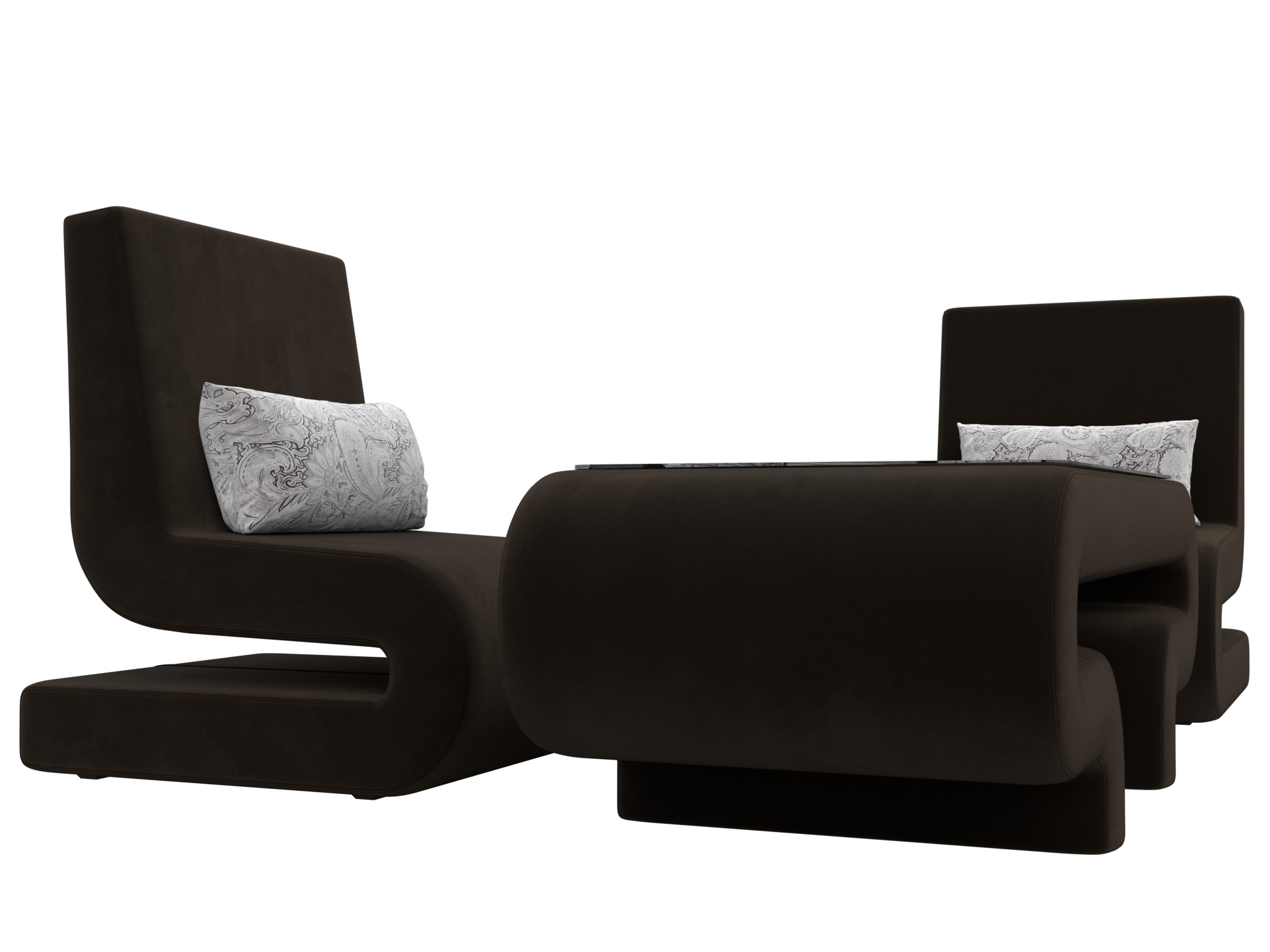 Комплект Волна-3 (стол, 2 кресла), Коричневый; Серый, Микровельвет