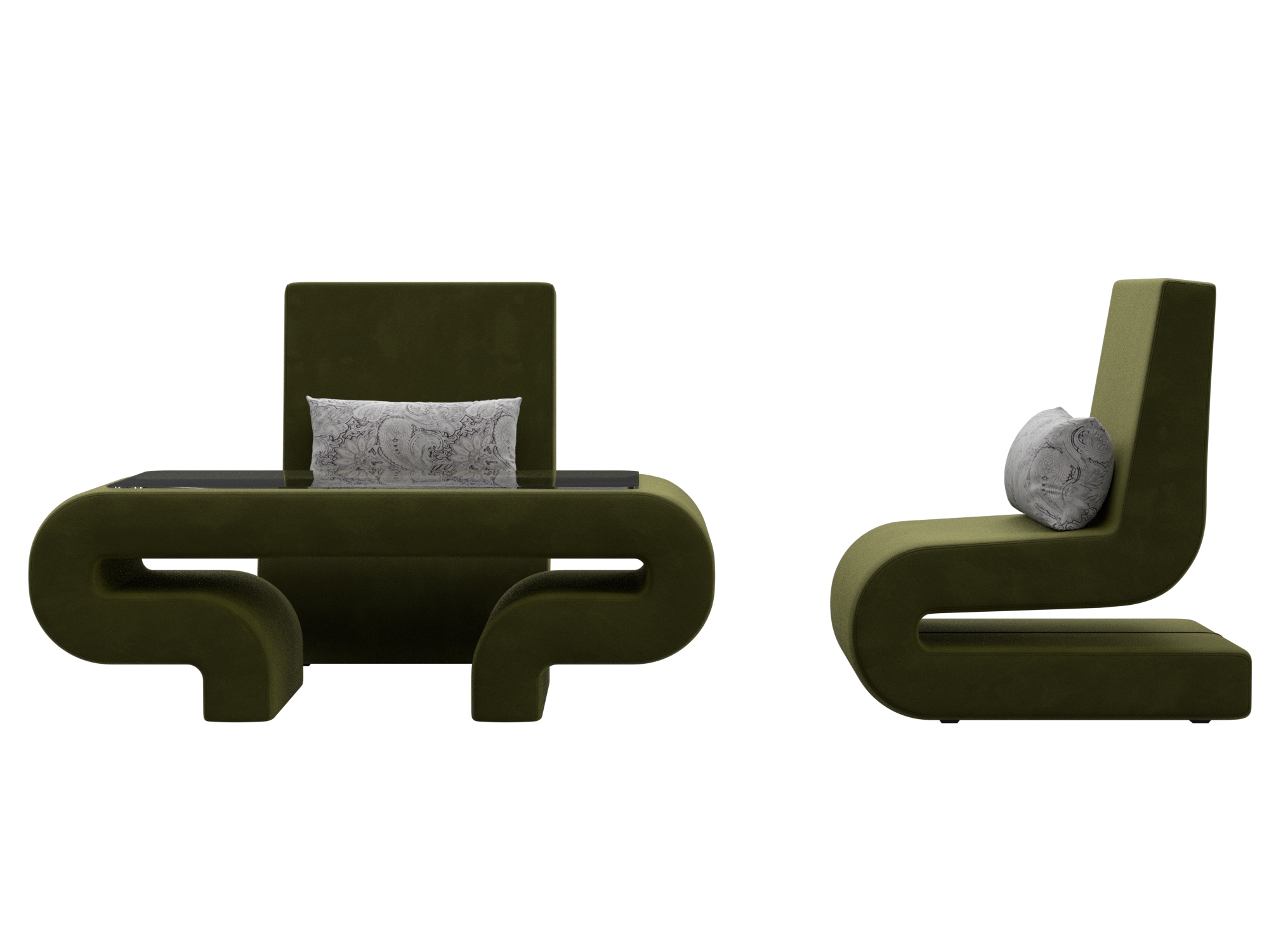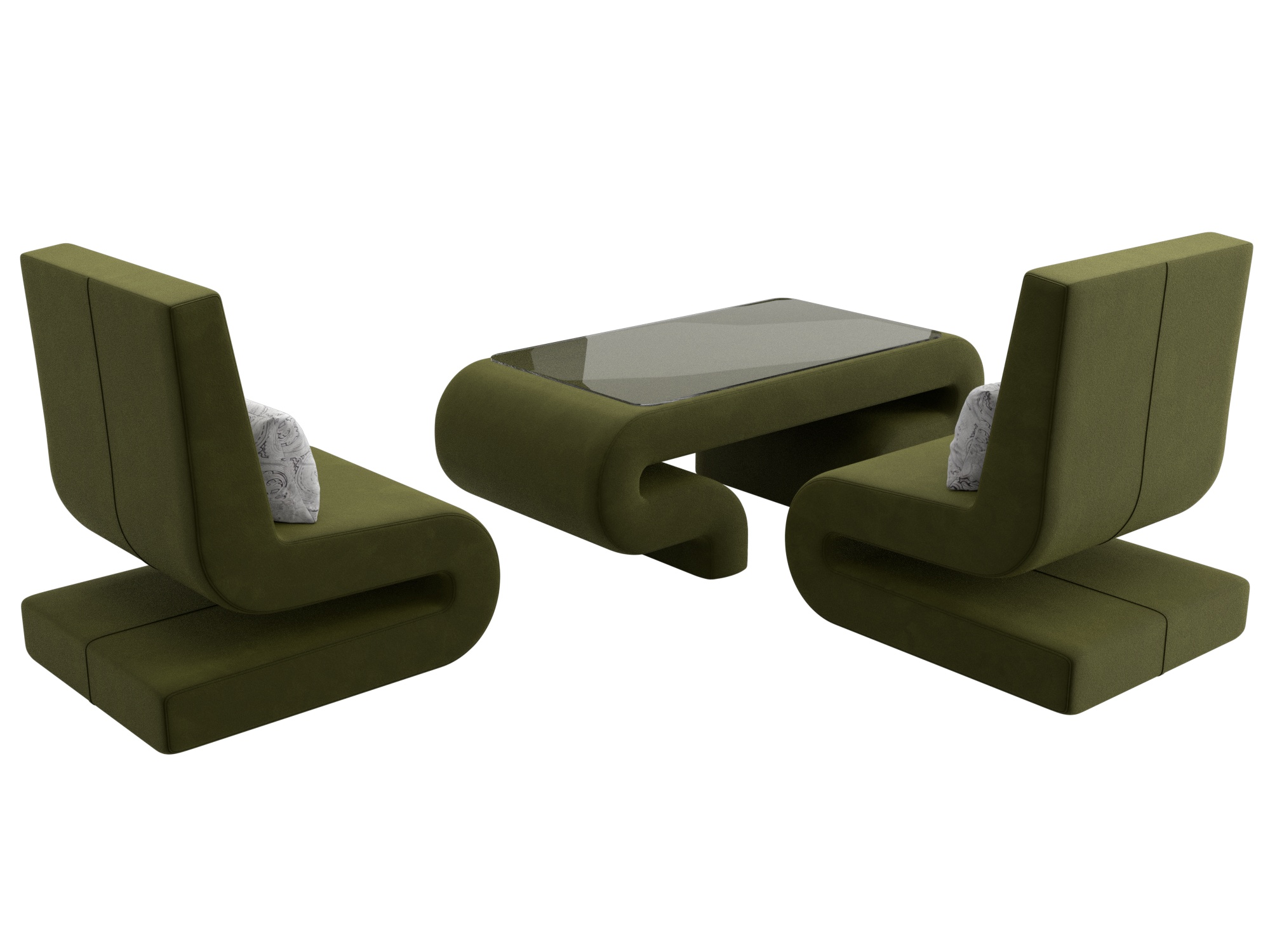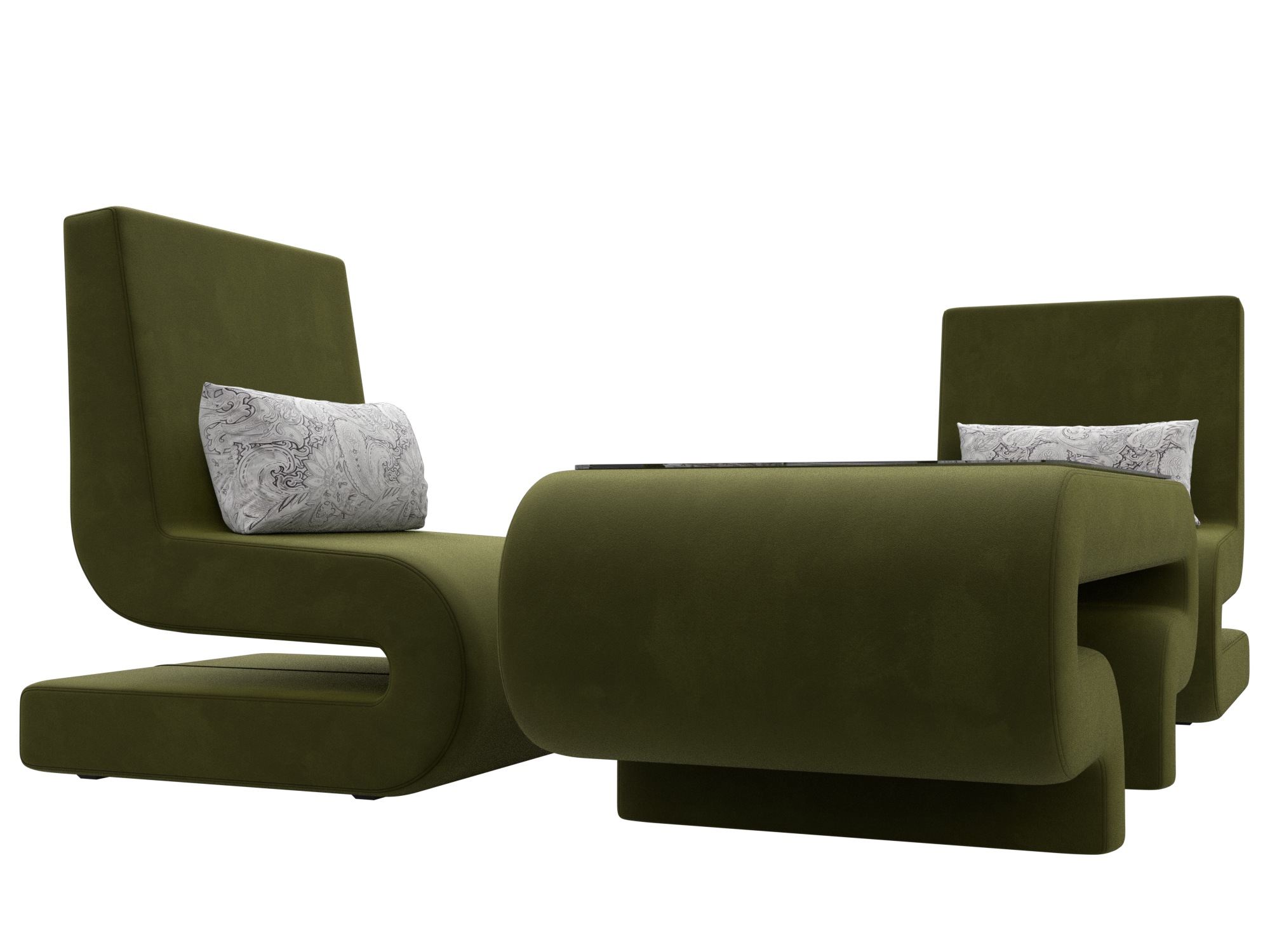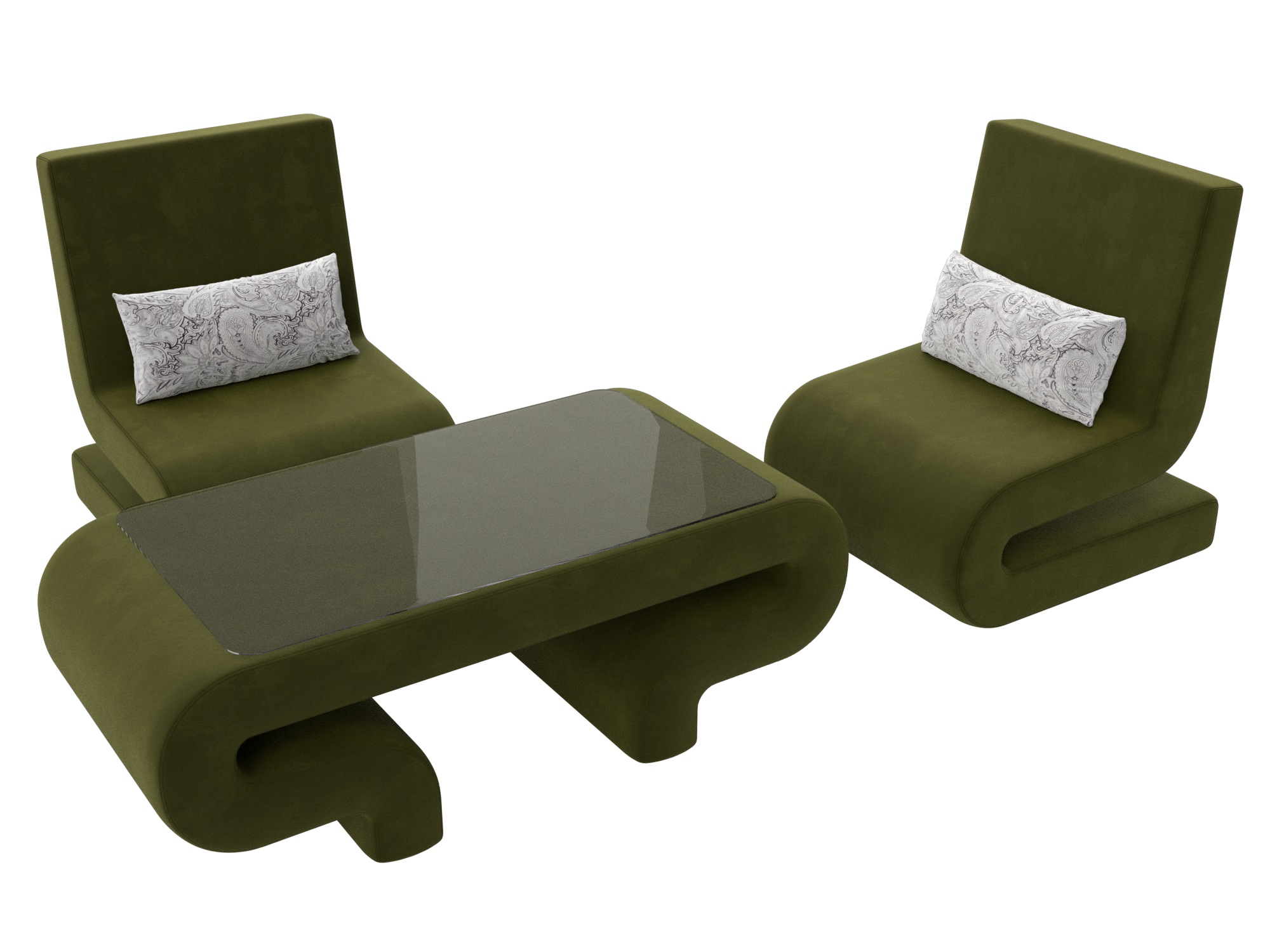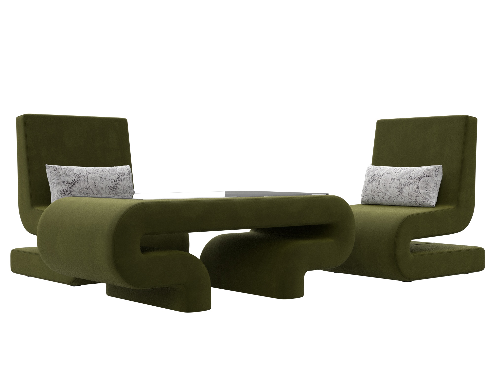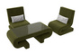 Комплект Волна-3 (стол, 2 кресла), Зеленый; Серый, Микровельвет