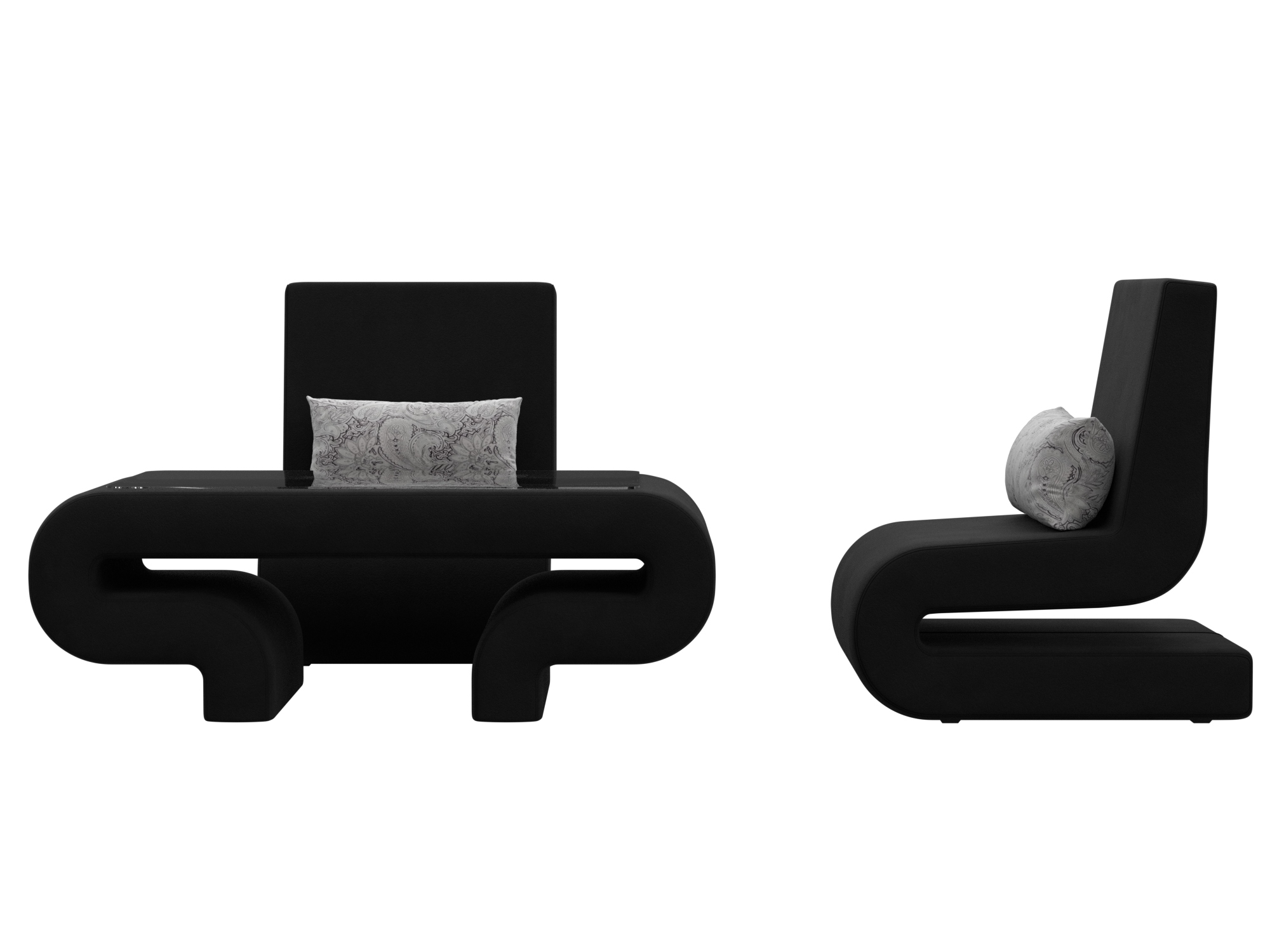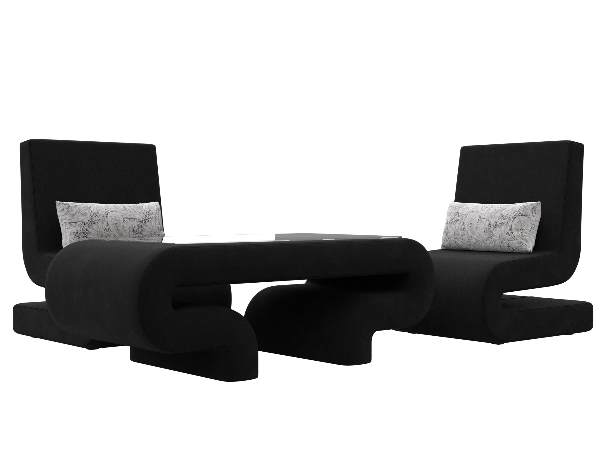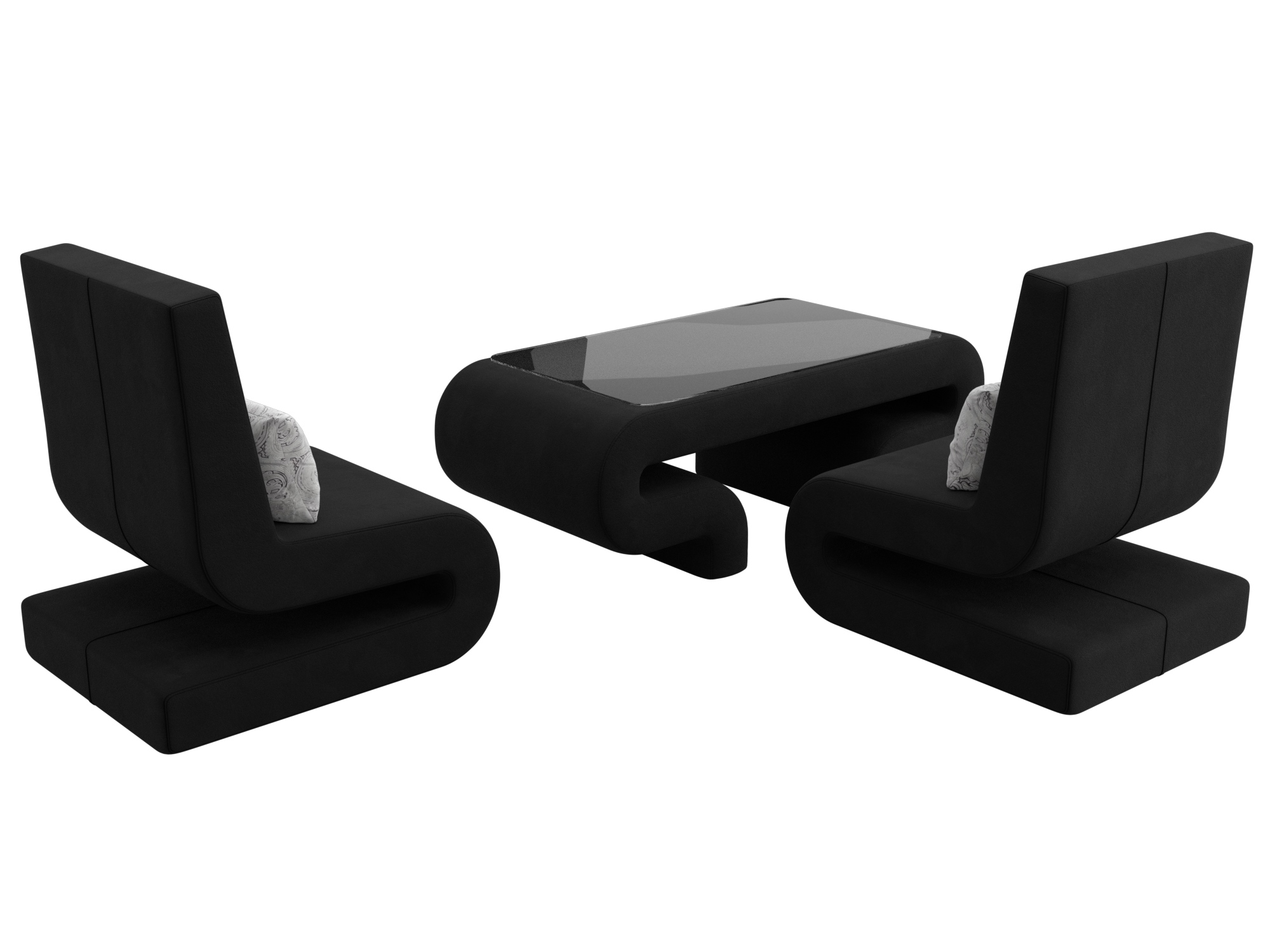 Комплект Волна-3 (стол, 2 кресла), Черный; Серый, Микровельвет