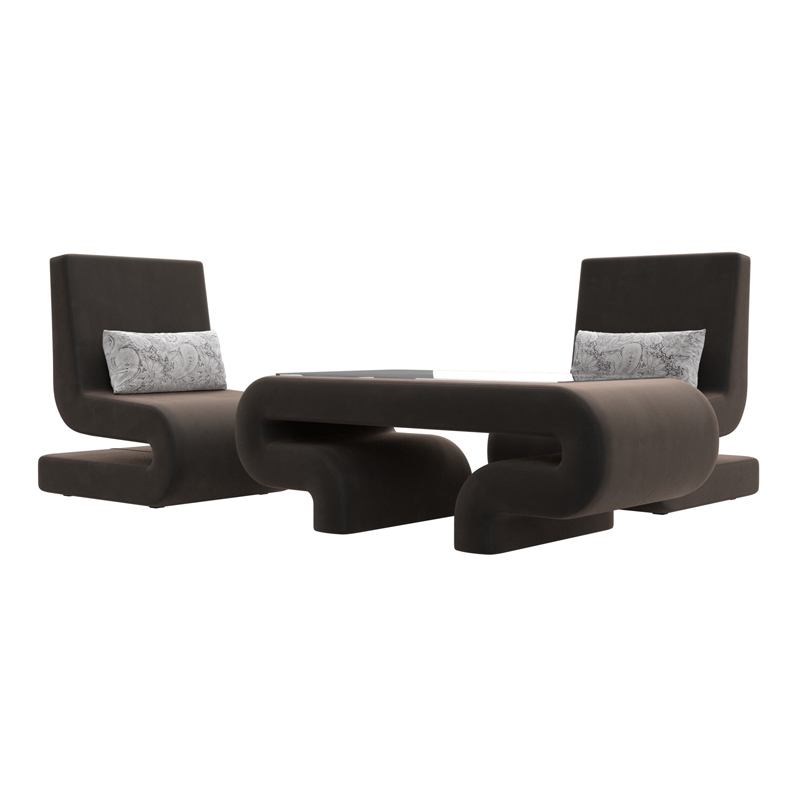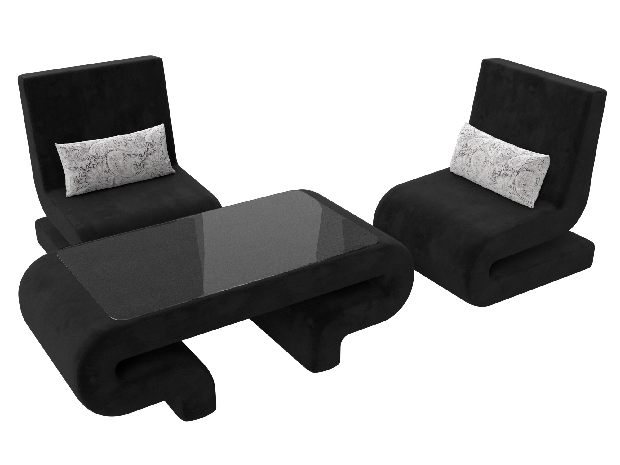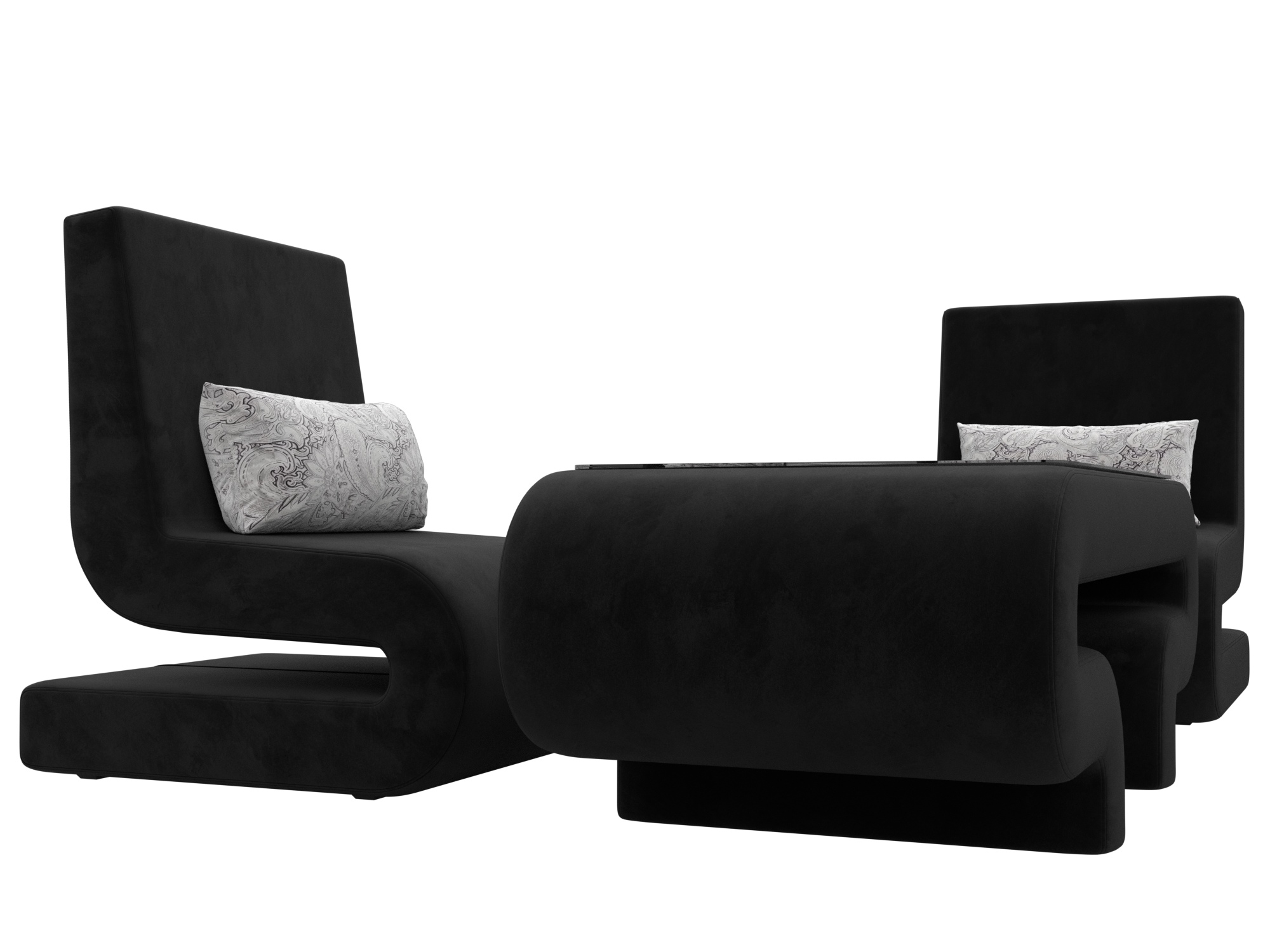 Комплект Волна-3 (стол, 2 кресла), Seven 35 черный; Seven 17 серый