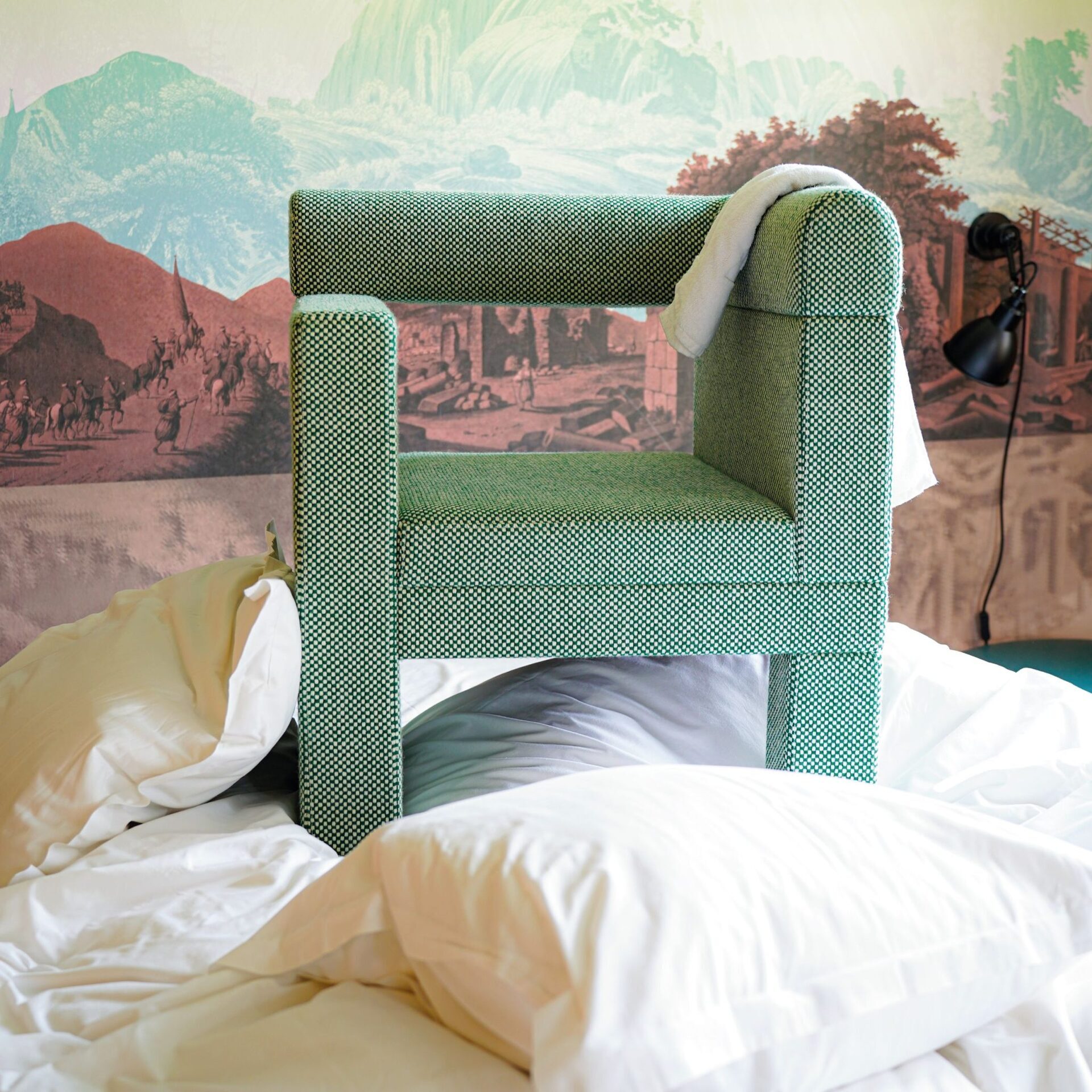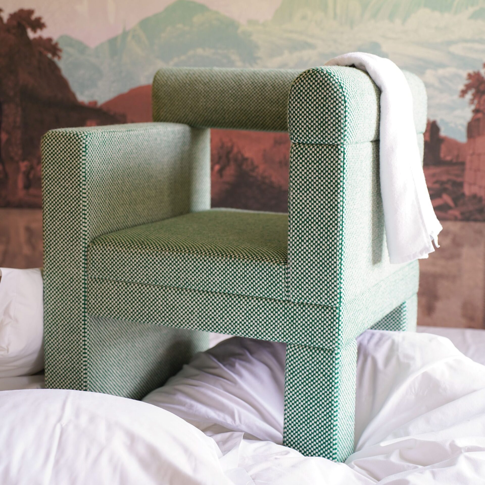 Его асимметричный и прямой внешний вид предлагает новаторскую форму в мире мебели. Оно было впервые представлено на выставке "Maison et Objet 2024". Его стиль подчеркивает эстетику 70-х годов.