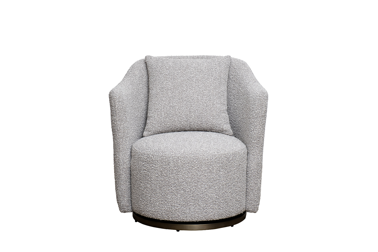 Запросить индивидуальное предложениеКресло Verona — изящное воплощение уюта и современной элегантности. Вращающаяся конструкция на бронзовом основании обеспечивает комфорт в движении, а мягкое серое букле с благородной фактурой подчёркивает премиальность модели. Эргономичная спинка и объемная подушка создают обволакивающее ощущение уюта. Это кресло идеально впишется в зону отдыха, спальню или библиотеку, став стильным акцентом в интерьере. Диаметр металлической части основания - 58см, высота - 3,5см. В стандартном исполнении: обивка в ткани букле из коллекции Garda Decor Orso-SER, основание - нержавеющая сталь цвет бронза.