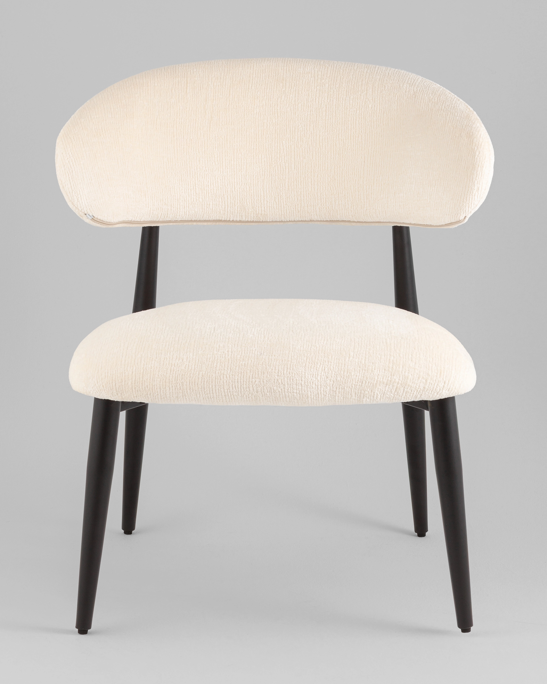 Продуманная эргономика и надежность Полукруглая спинка поддерживает поясницу и позволяет удобно расположиться, а широкое сиденье обеспечивает расслабленную посадку. Металлические ножки с подпятниками защищают напольное покрытие и выдерживают нагрузку до 120 кг — кресло не только красиво, но и практично.