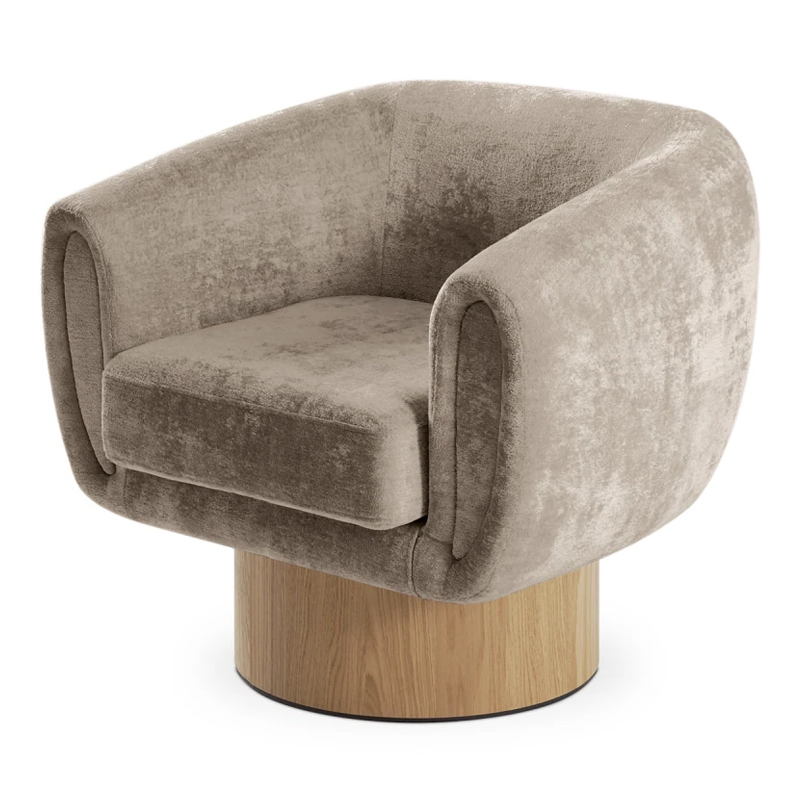 Запросить индивидуальное предложениеКорпус кресла установлен на основание цилиндрической формы, выполненное в 2-х вариантах: облицовка тканью или шпоном в трех цветах (дуб натуральный, дуб черный, орех).