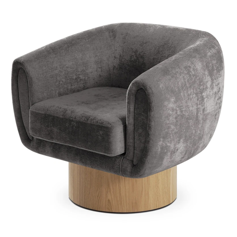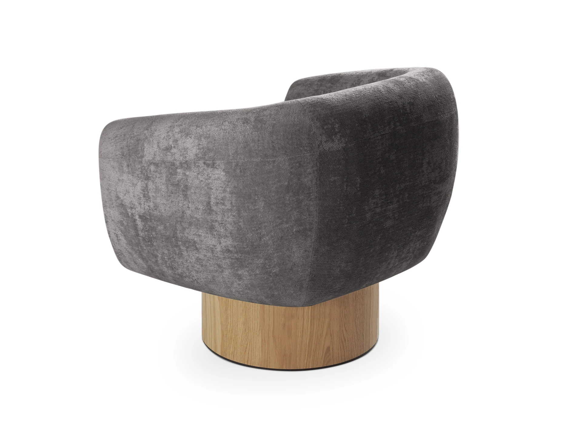 Запросить индивидуальное предложениеКорпус кресла установлен на основание цилиндрической формы, выполненное в 2-х вариантах: облицовка тканью или шпоном в трех цветах (дуб натуральный, дуб черный, орех).