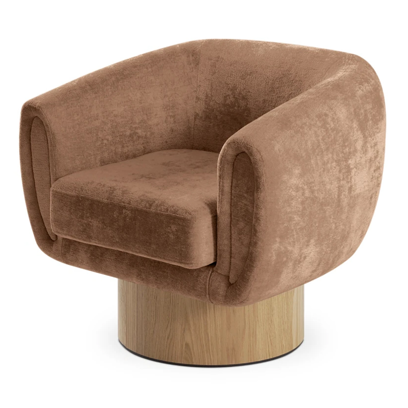 Запросить индивидуальное предложениеКорпус кресла установлен на основание цилиндрической формы, выполненное в 2-х вариантах: облицовка тканью или шпоном в трех цветах (дуб натуральный, дуб черный, орех).