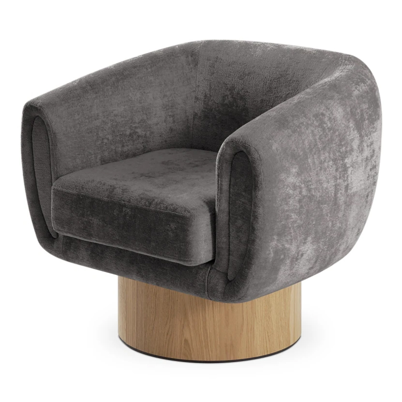 Запросить индивидуальное предложениеКорпус кресла установлен на основание цилиндрической формы, выполненное в 2-х вариантах: облицовка тканью или шпоном в трех цветах (дуб натуральный, дуб черный, орех).