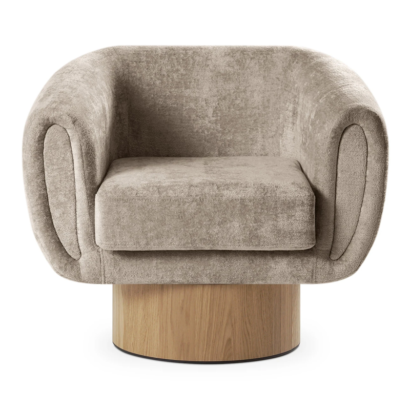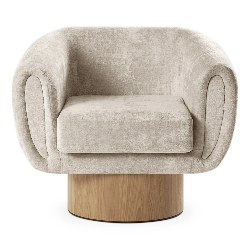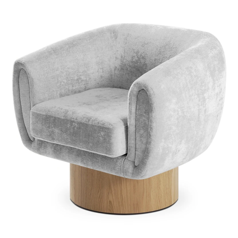 Запросить индивидуальное предложениеКорпус кресла установлен на основание цилиндрической формы, выполненное в 2-х вариантах: облицовка тканью или шпоном в трех цветах (дуб натуральный, дуб черный, орех).
