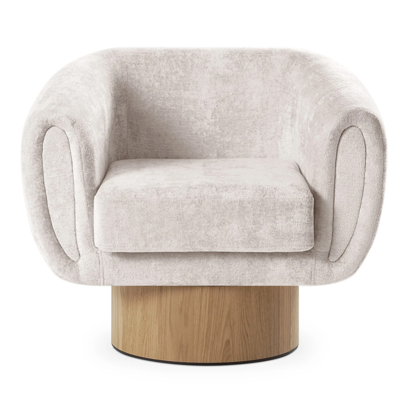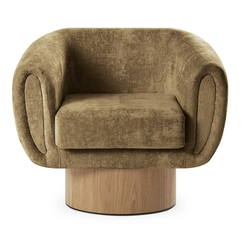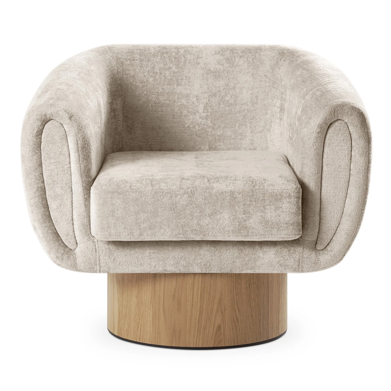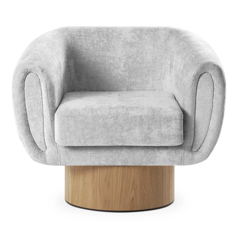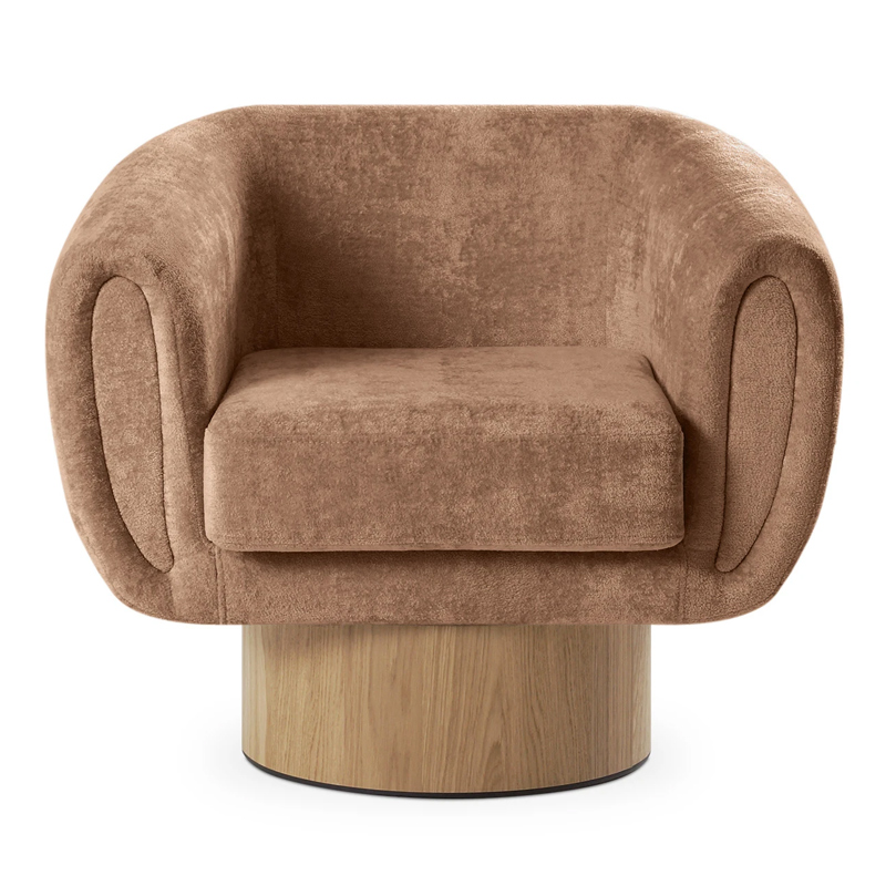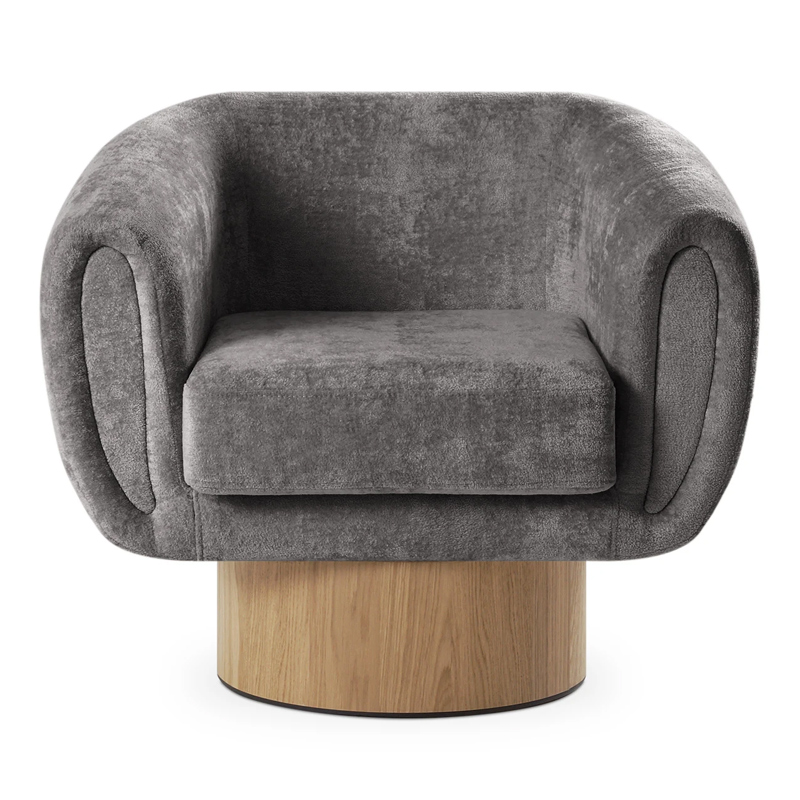 Запросить индивидуальное предложениеКорпус кресла установлен на основание цилиндрической формы, выполненное в 2-х вариантах: облицовка тканью или шпоном в трех цветах (дуб натуральный, дуб черный, орех).