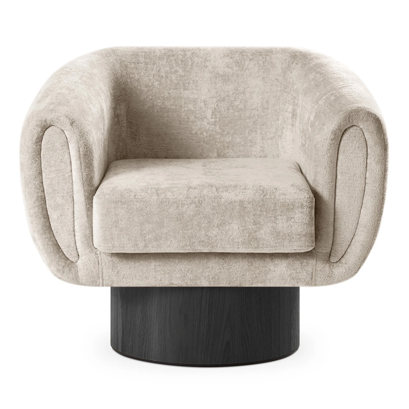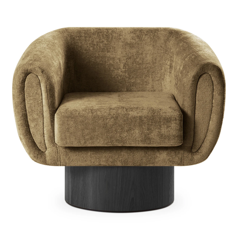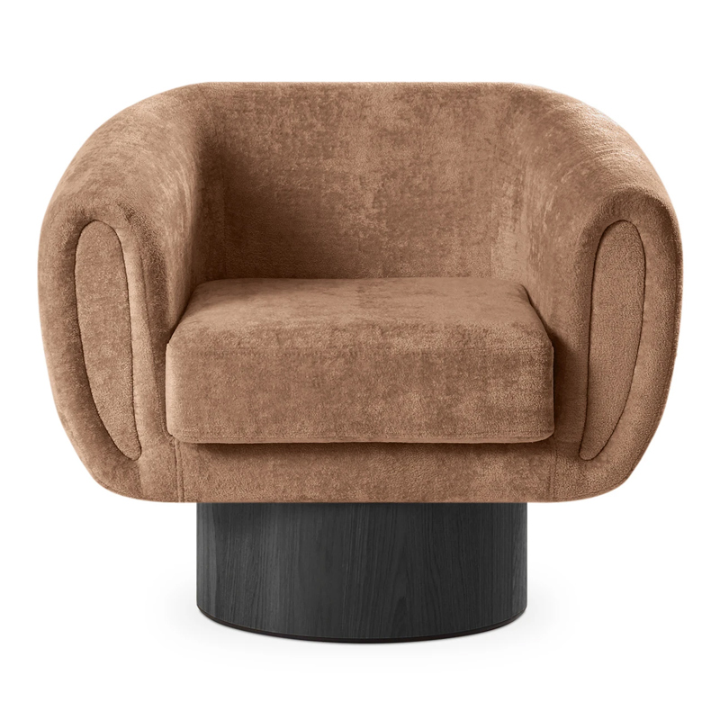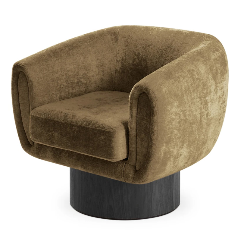 Запросить индивидуальное предложениеКорпус кресла установлен на основание цилиндрической формы, выполненное в 2-х вариантах: облицовка тканью или шпоном в трех цветах (дуб натуральный, дуб черный, орех).