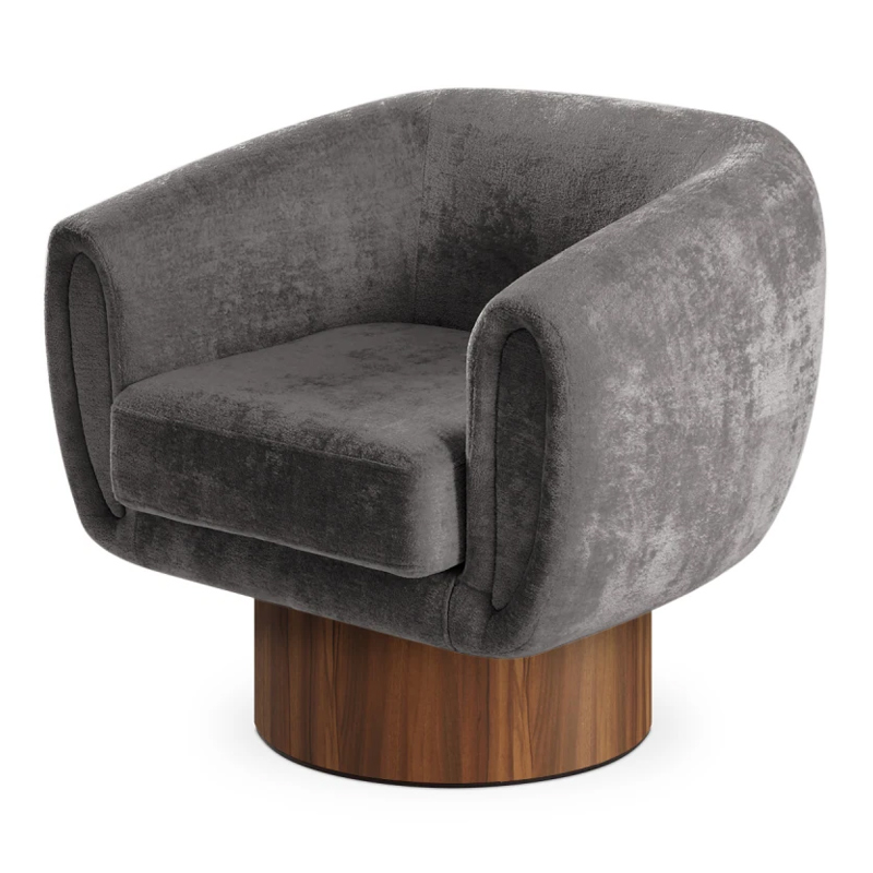Запросить индивидуальное предложениеКорпус кресла установлен на основание цилиндрической формы, выполненное в 2-х вариантах: облицовка тканью или шпоном в трех цветах (дуб натуральный, дуб черный, орех).