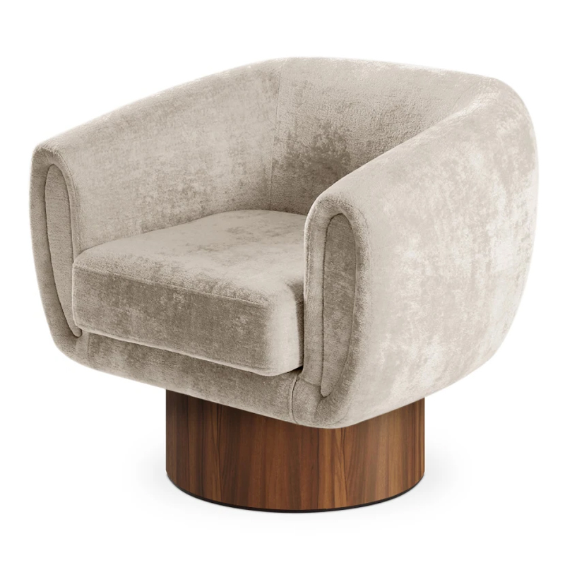 Запросить индивидуальное предложениеКорпус кресла установлен на основание цилиндрической формы, выполненное в 2-х вариантах: облицовка тканью или шпоном в трех цветах (дуб натуральный, дуб черный, орех).