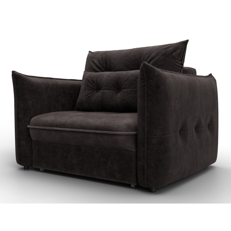 В сочетании с верхним слоем из пенополиуретана и блока независимых пружин наполнение кресла получается достаточно мягким, чтобы сделать посадку комфортной. Конструкция легко выдержит значительные нагрузки, сохраняя форму. Эксплуатация бесшумная. Верхняя мебельная ткань имеет эффектный внешний вид и отличается простотой в уходе. - Компактность