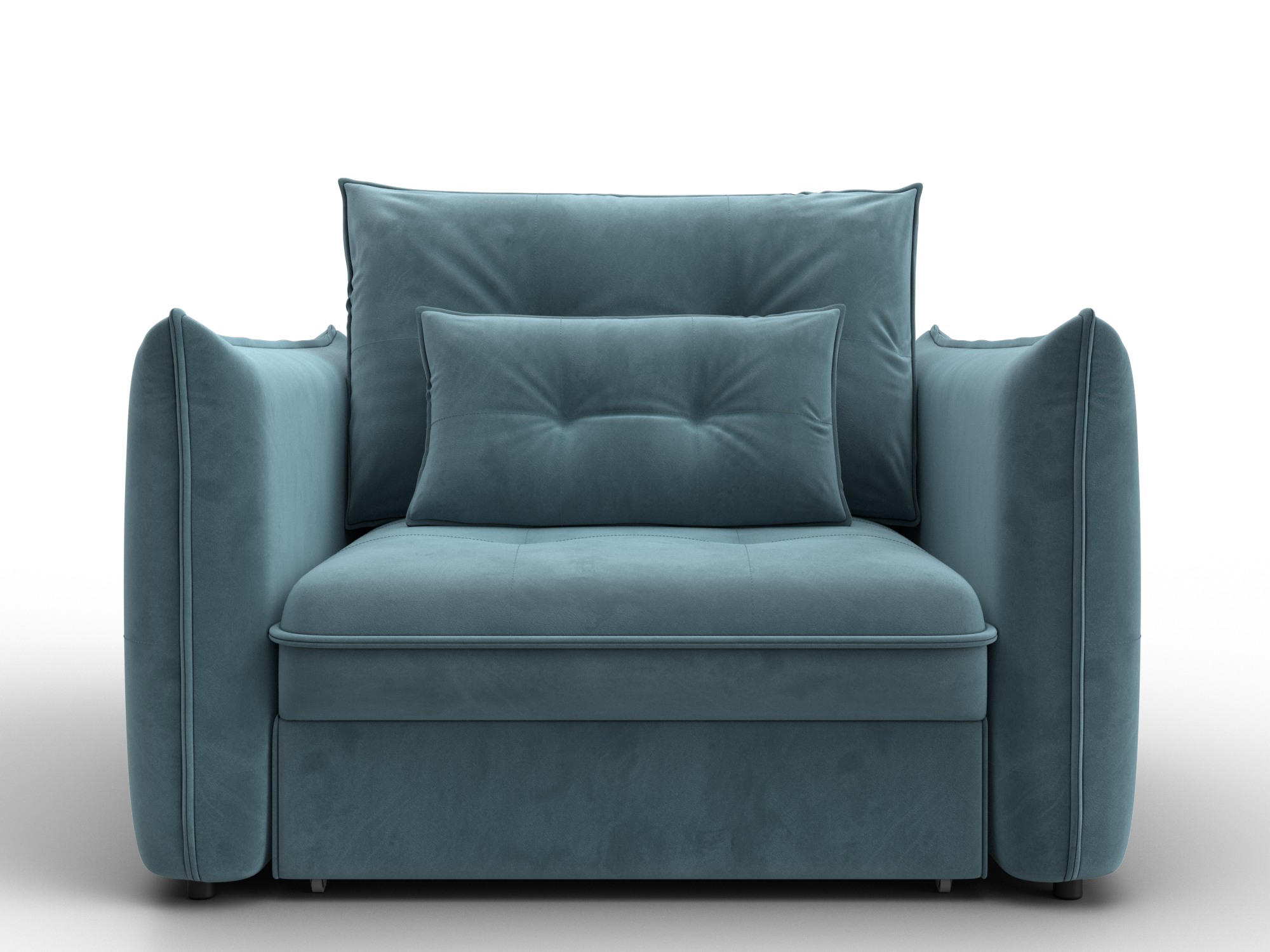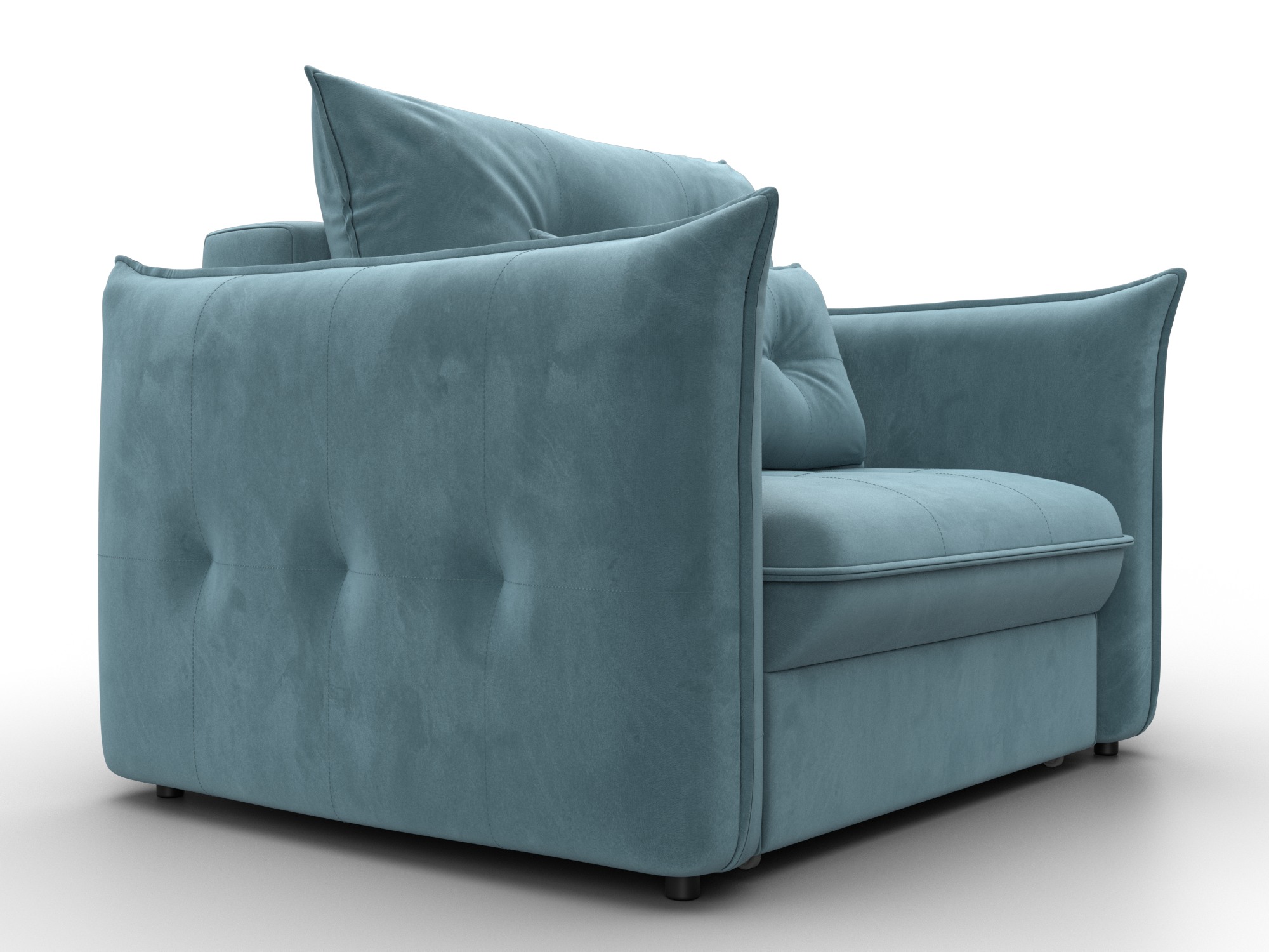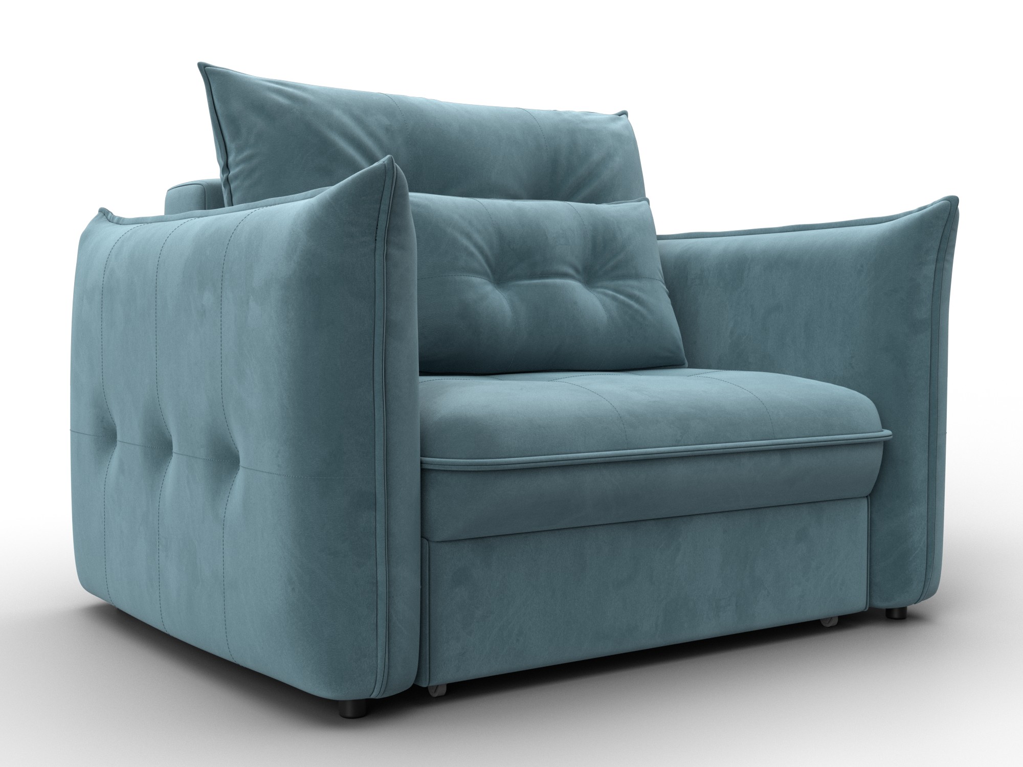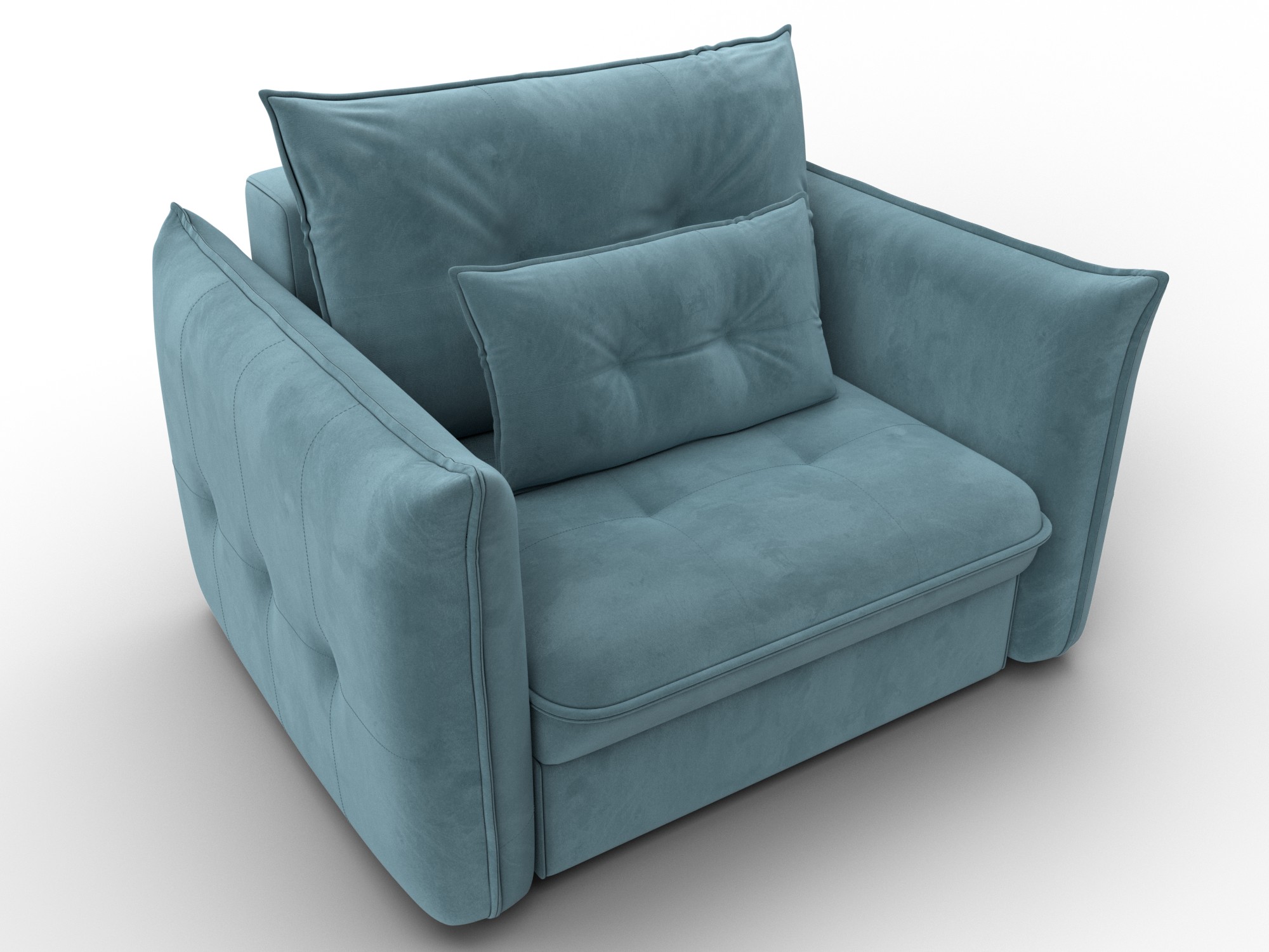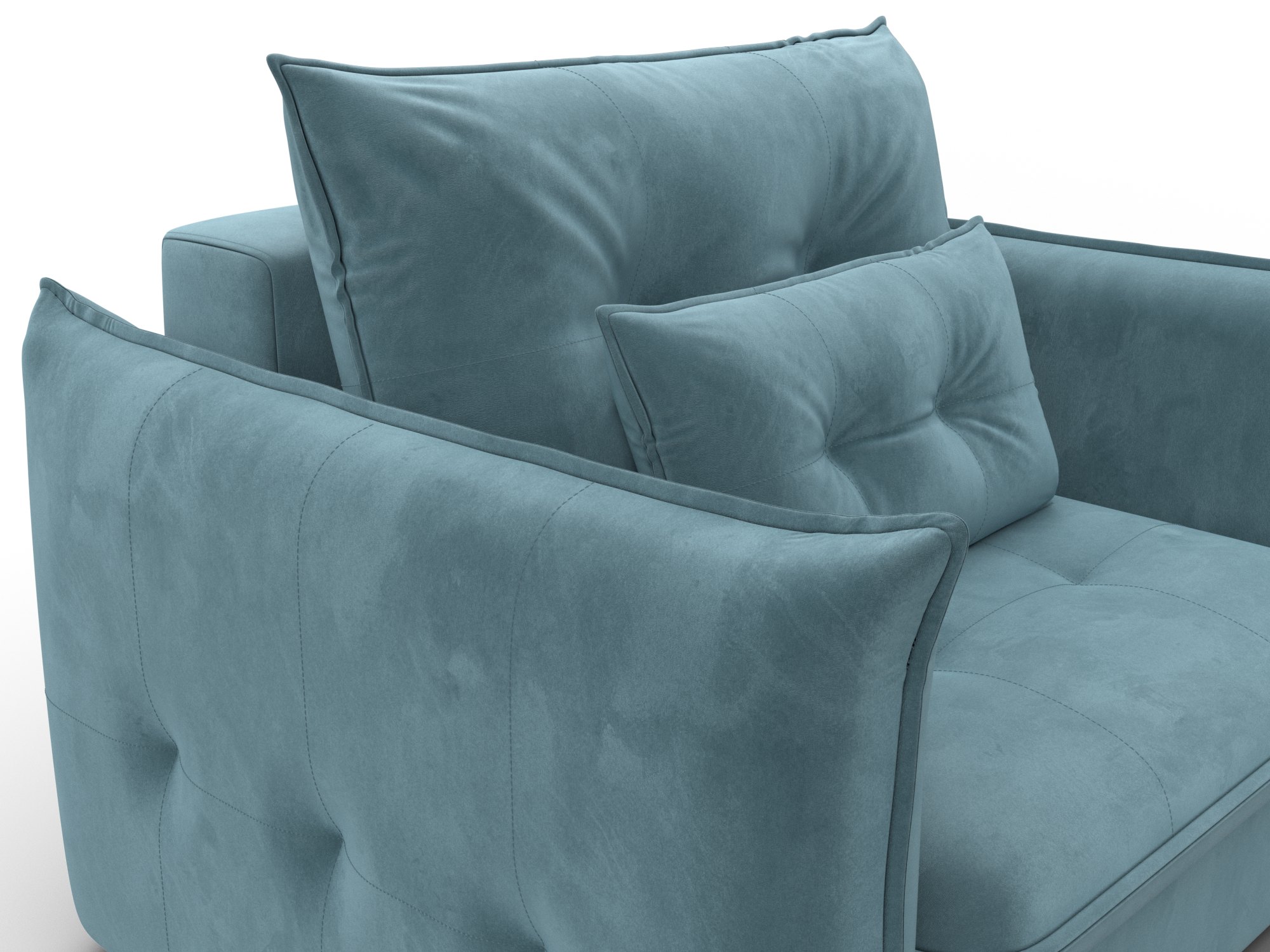 В сочетании с верхним слоем из пенополиуретана и блока независимых пружин наполнение кресла получается достаточно мягким, чтобы сделать посадку комфортной. Конструкция легко выдержит значительные нагрузки, сохраняя форму. Эксплуатация бесшумная. Верхняя мебельная ткань имеет эффектный внешний вид и отличается простотой в уходе. - Компактность