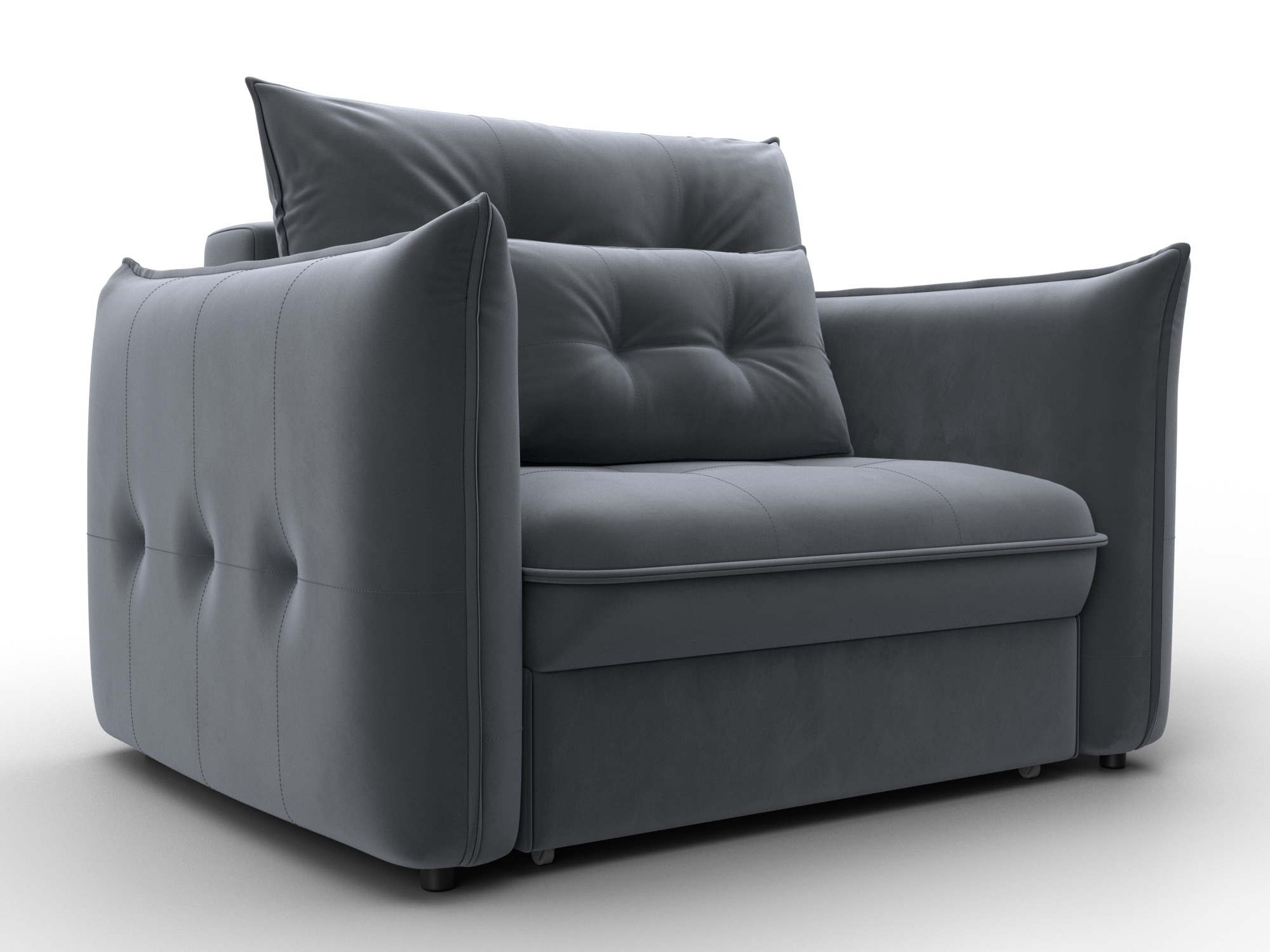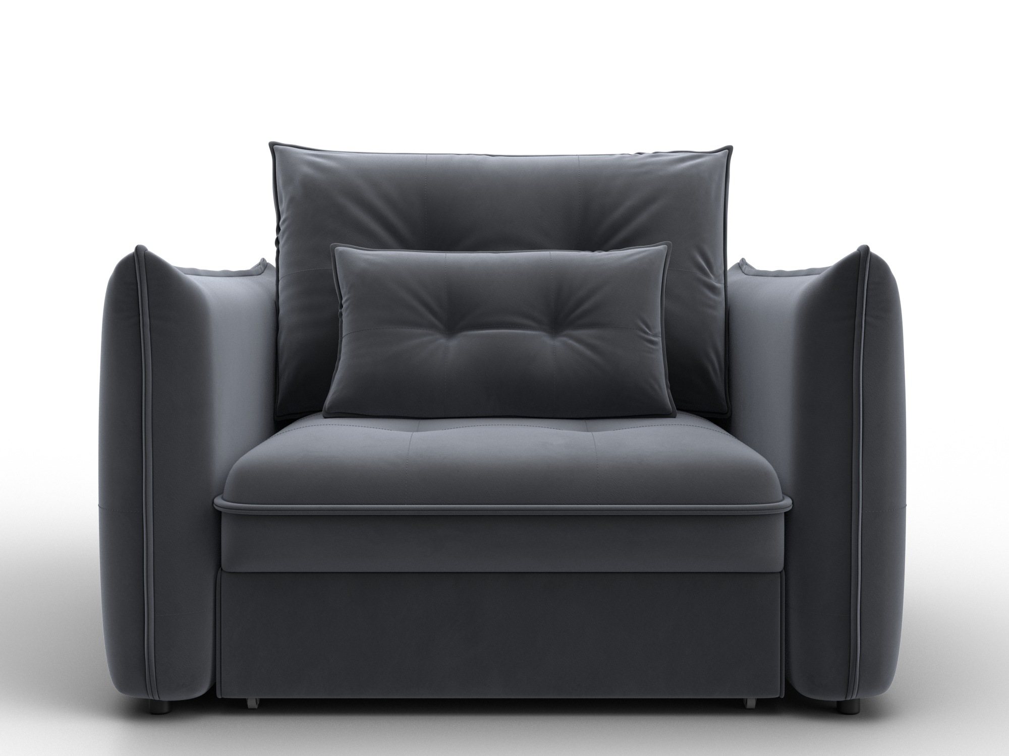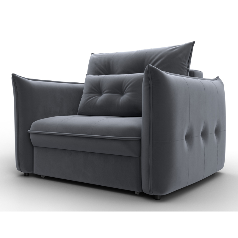 В сочетании с верхним слоем из пенополиуретана и блока независимых пружин наполнение кресла получается достаточно мягким, чтобы сделать посадку комфортной. Конструкция легко выдержит значительные нагрузки, сохраняя форму. Эксплуатация бесшумная. Верхняя мебельная ткань имеет эффектный внешний вид и отличается простотой в уходе. - Компактность